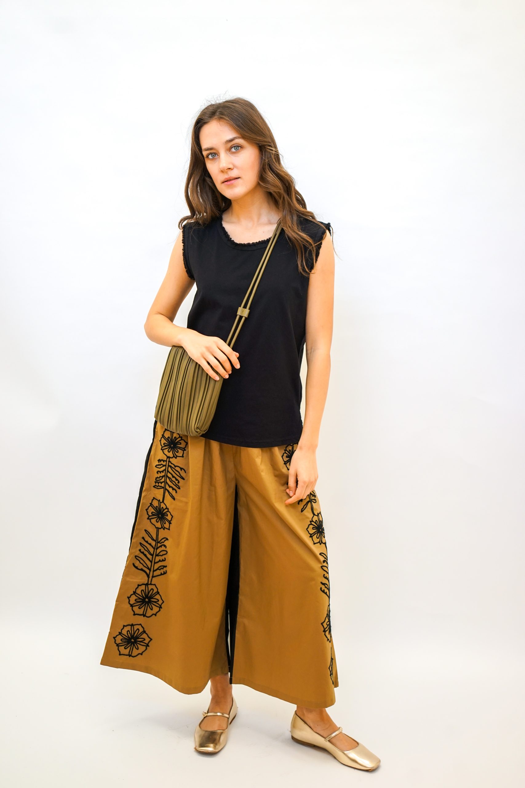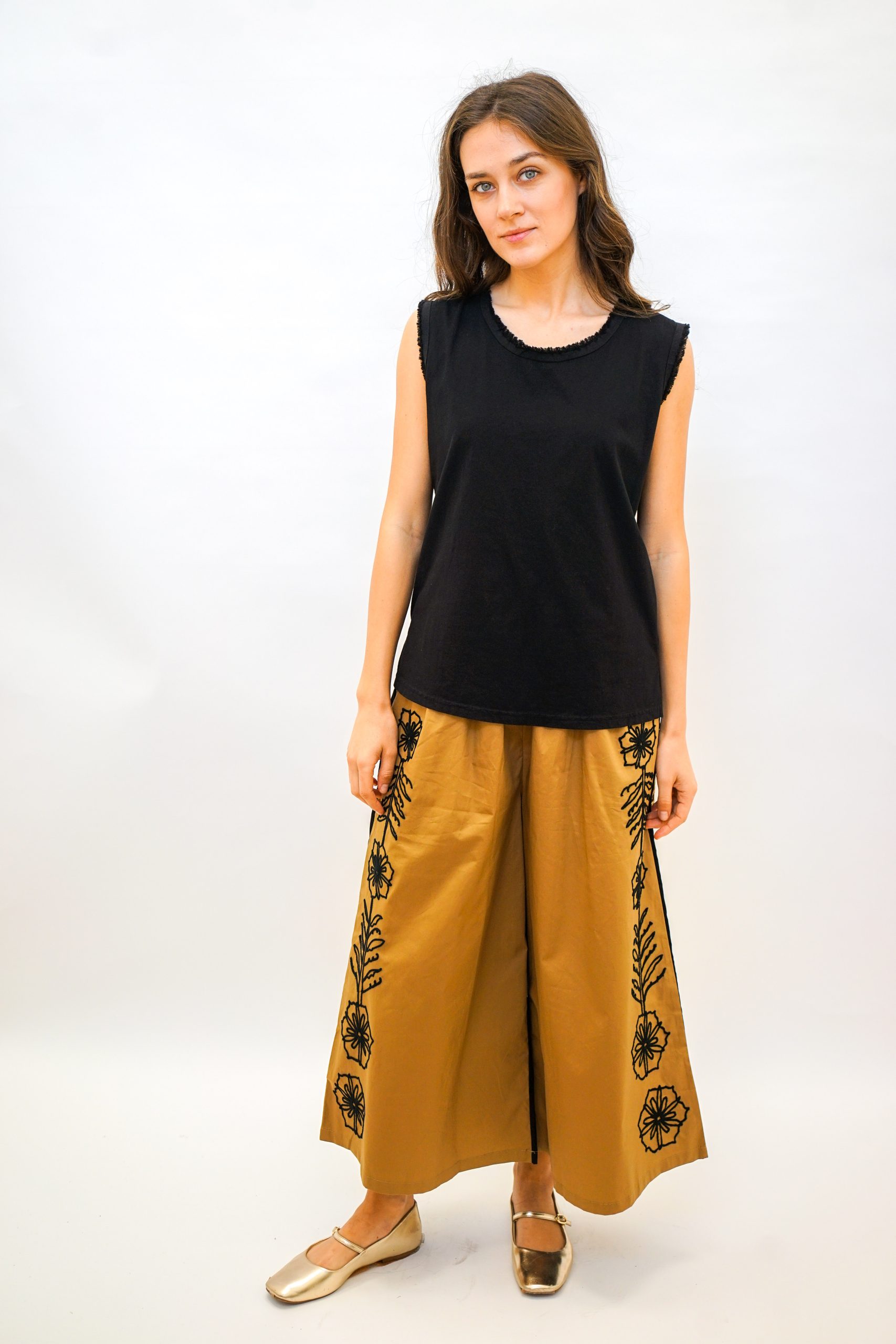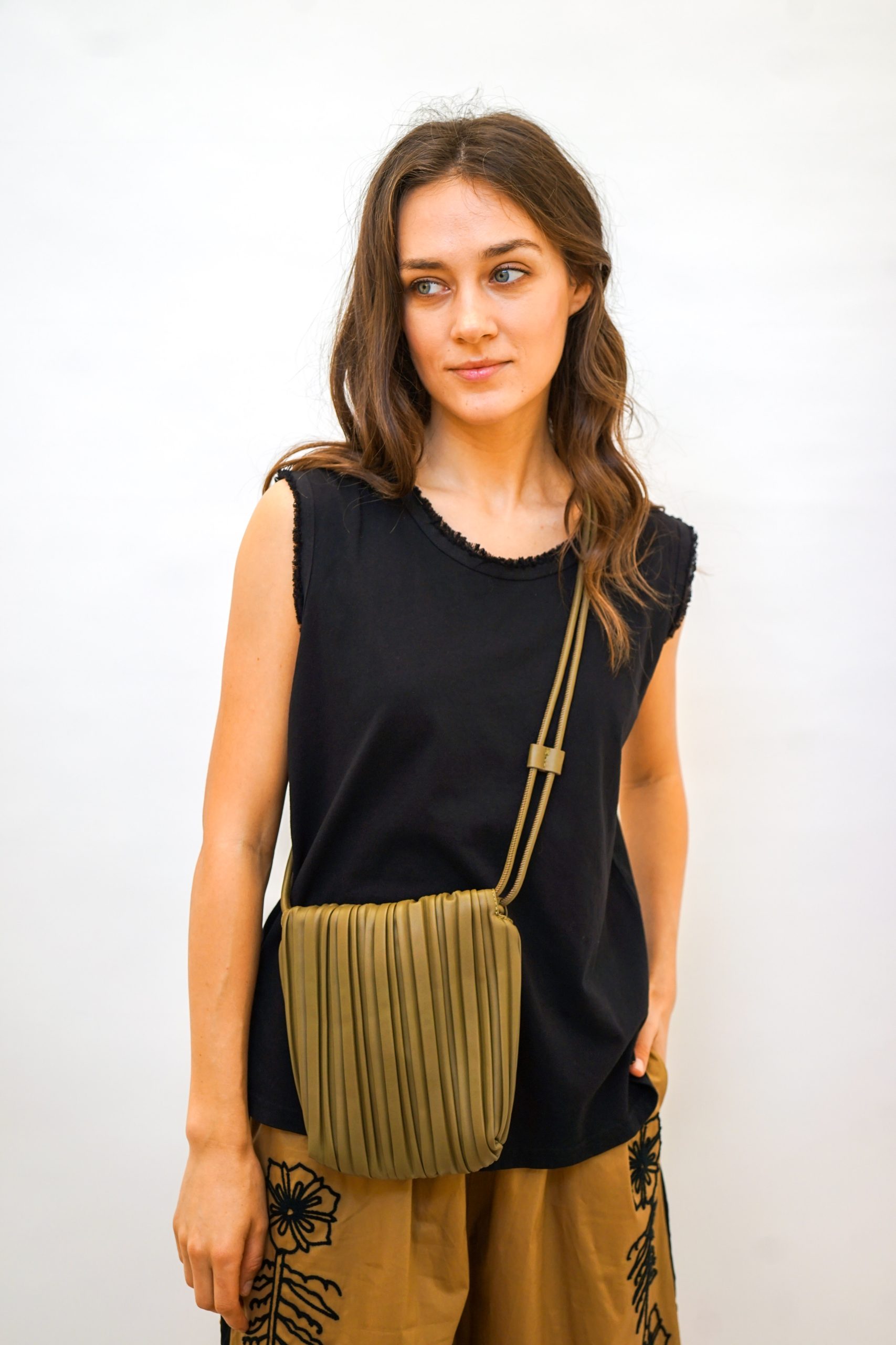 גופייה מבד כותנה עם חיתוך פרנזים בצווארון ובשרוולים 2 שליצים בצידי הגופייה גופייה דקה וקלילה לימי הקיץ