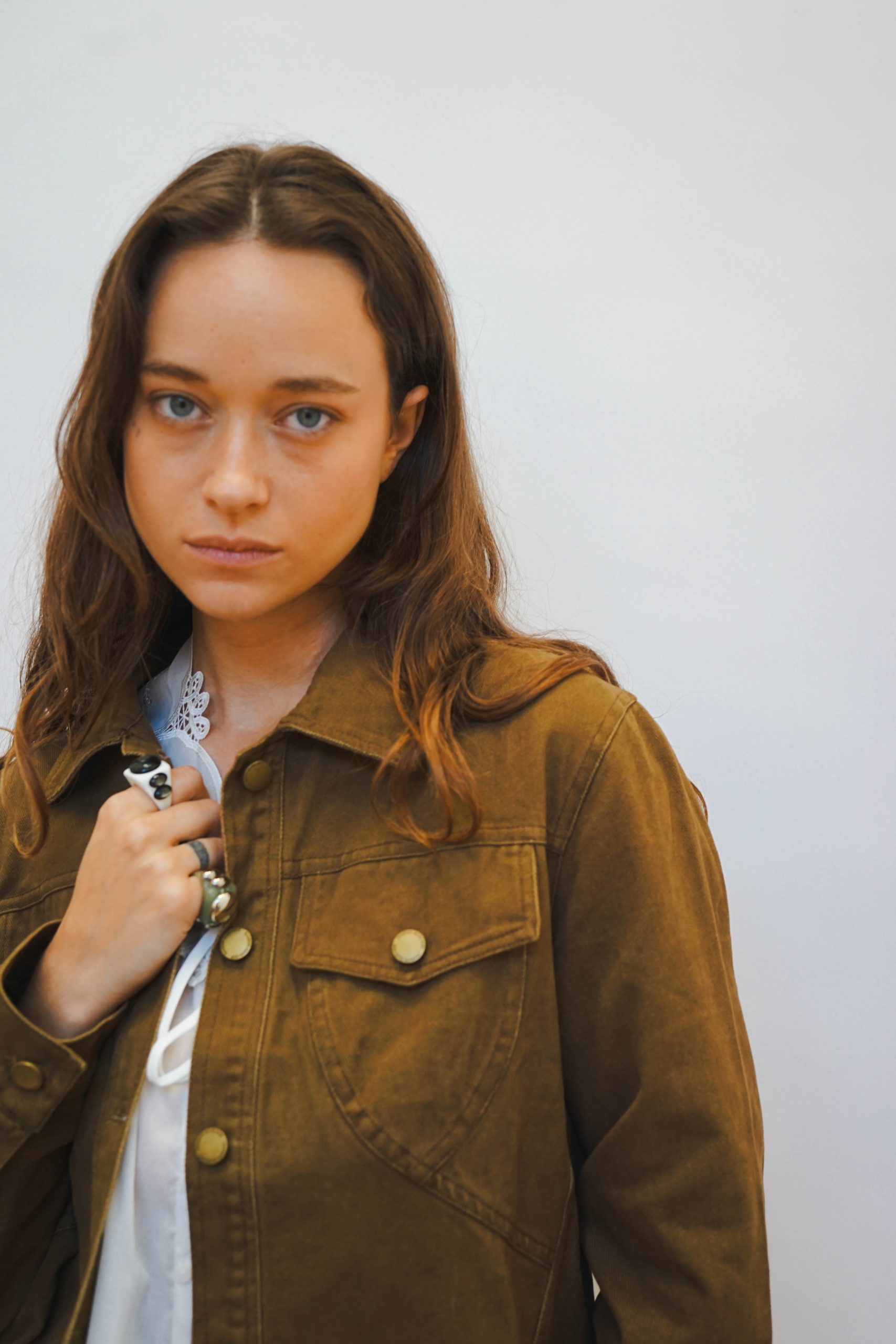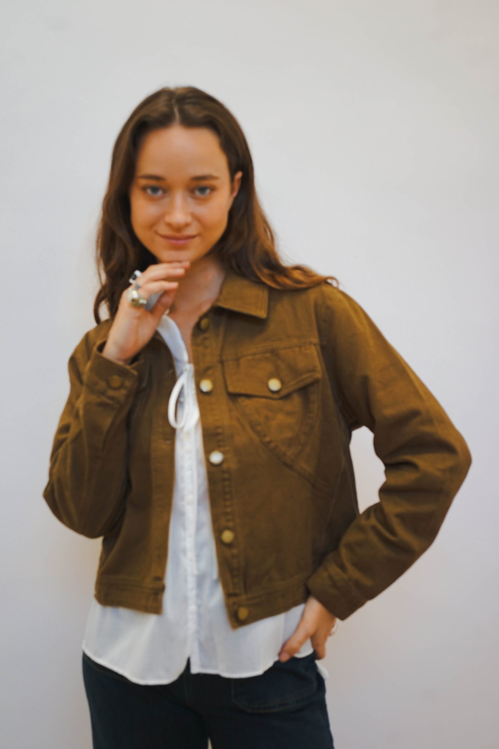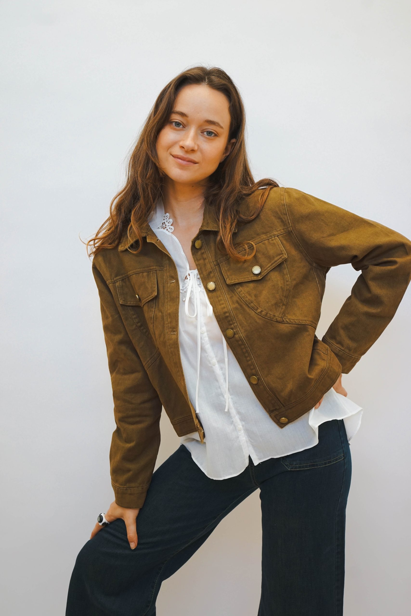ג'קט ג'ינס בצבע כפתורים מוזהבים לכל האורך כיסים קטנים בגיזרה מחמיאה מתאים לכל לוק להשלמתו ערב או בוקר עם חצאית או מעל שמלה ג'קט שתחרשי עליו בוודאות אורך 54 היקף 1 מטר