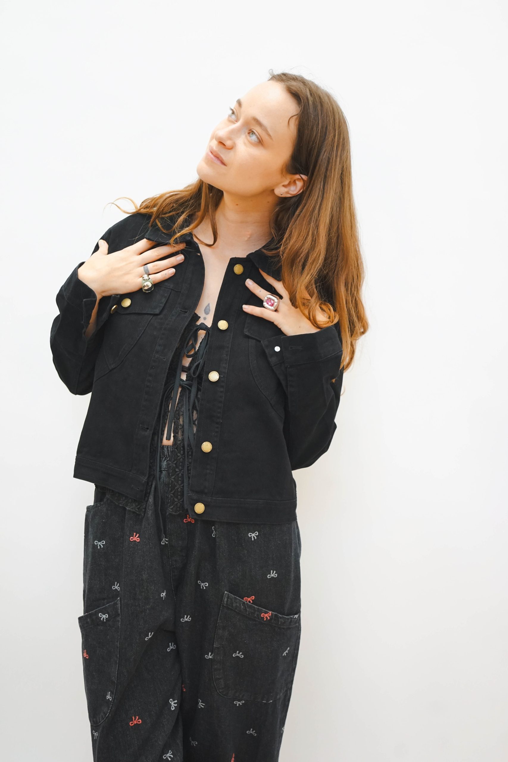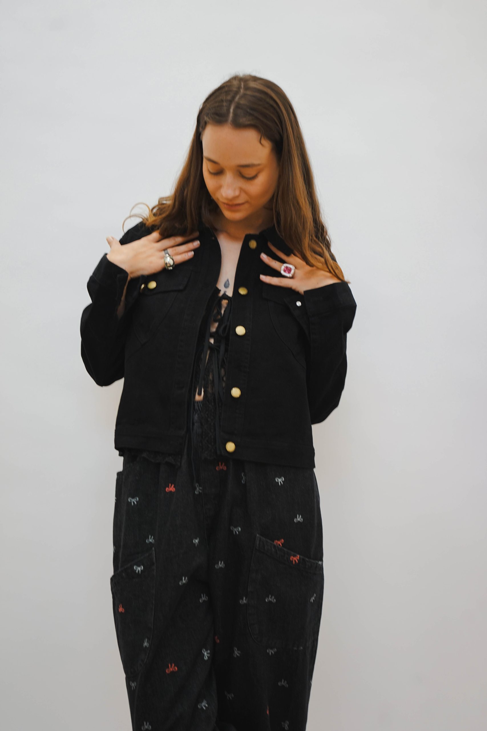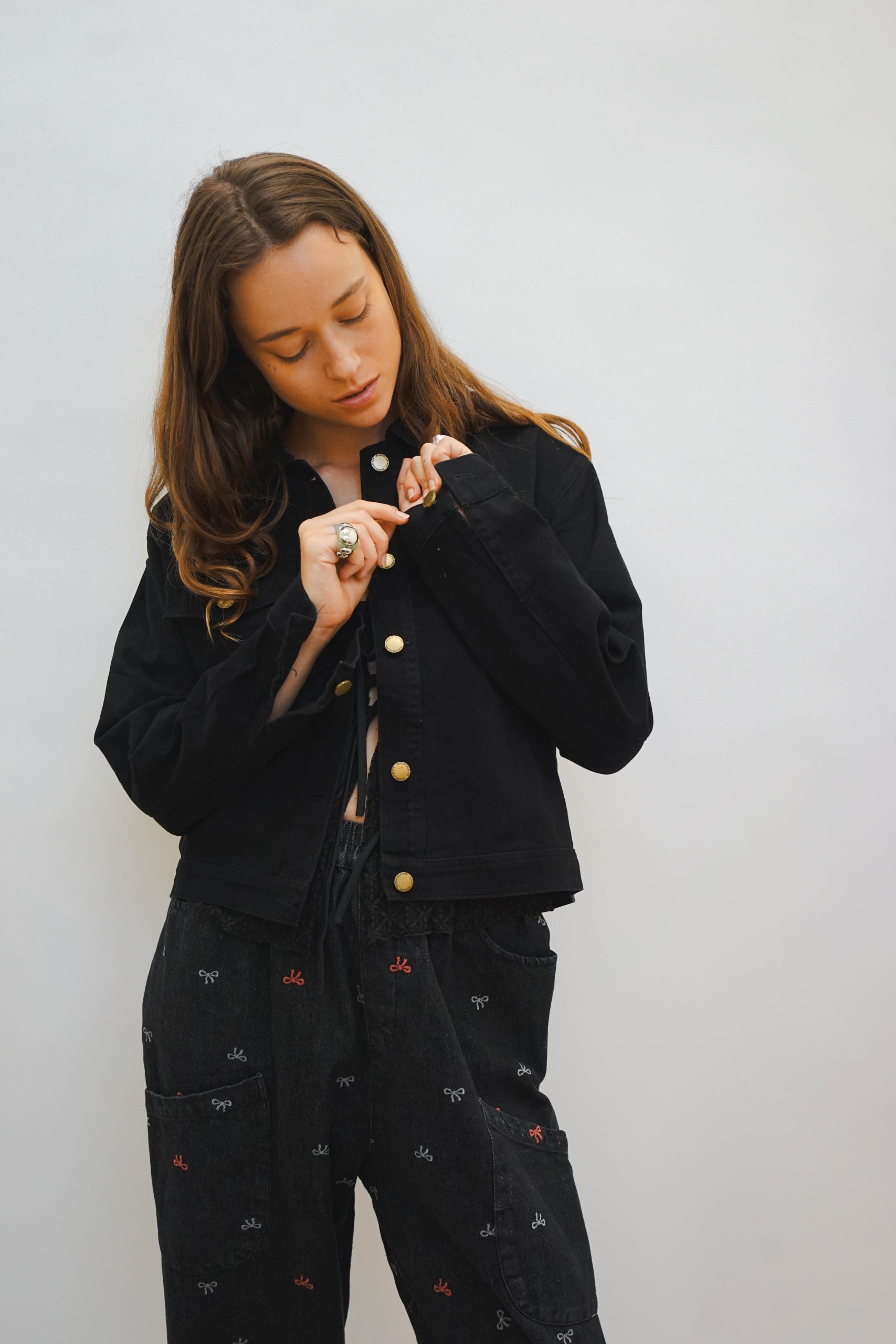 ג'קט ג'ינס בצבע כפתורים מוזהבים לכל האורך כיסים קטנים בגיזרה מחמיאה מתאים לכל לוק להשלמתו ערב או בוקר עם חצאית או מעל שמלה ג'קט שתחרשי עליו בוודאות אורך 54 היקף 1 מטר