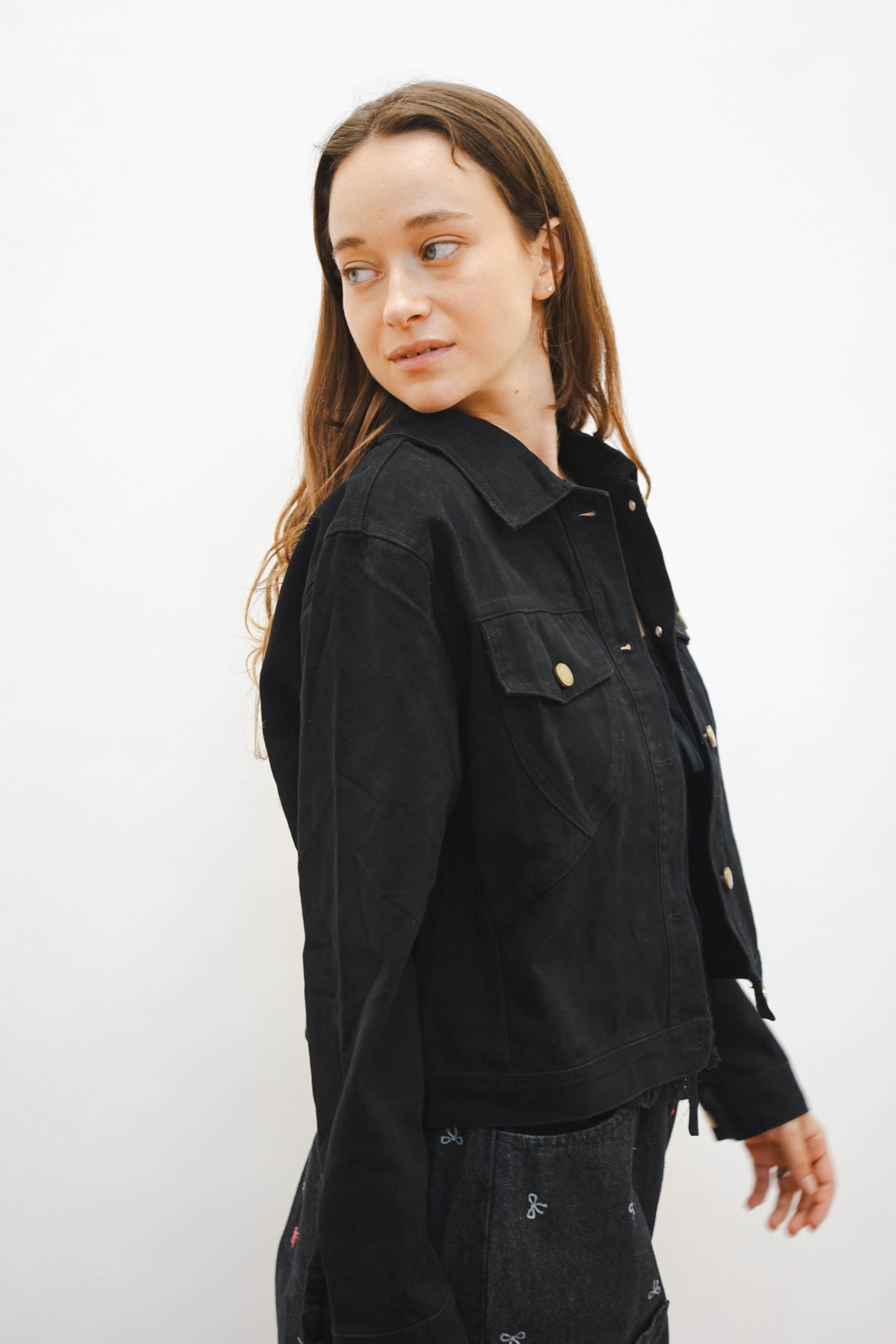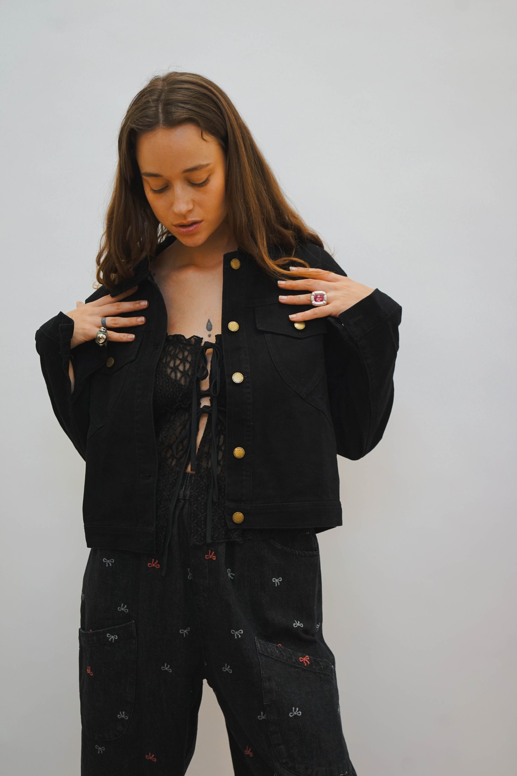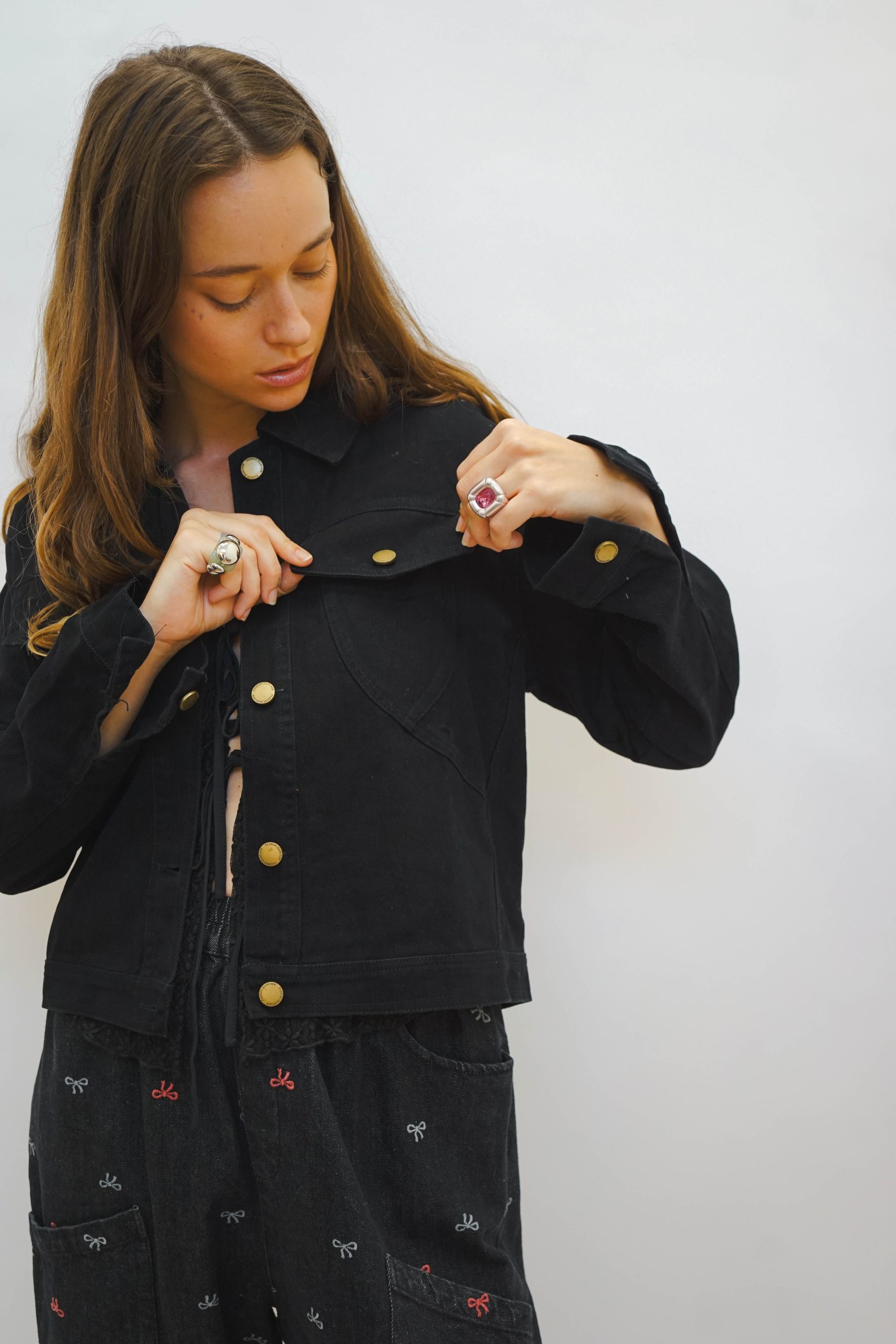 ג'קט ג'ינס בצבע כפתורים מוזהבים לכל האורך כיסים קטנים בגיזרה מחמיאה מתאים לכל לוק להשלמתו ערב או בוקר עם חצאית או מעל שמלה ג'קט שתחרשי עליו בוודאות אורך 54 היקף 1 מטר