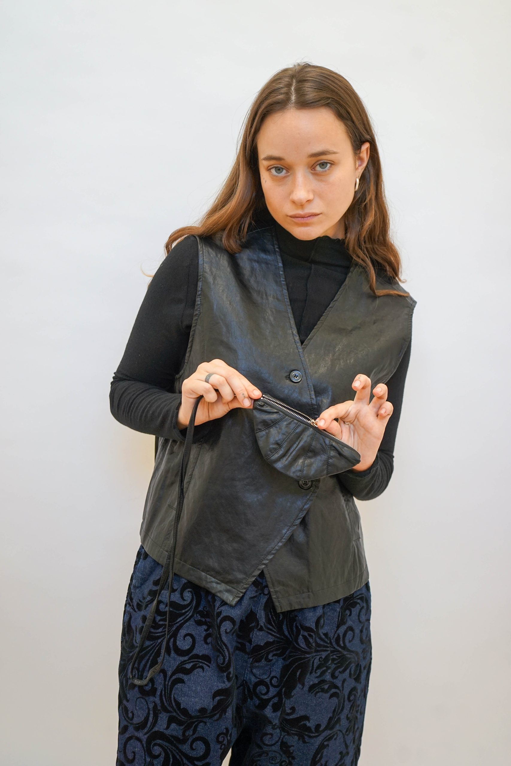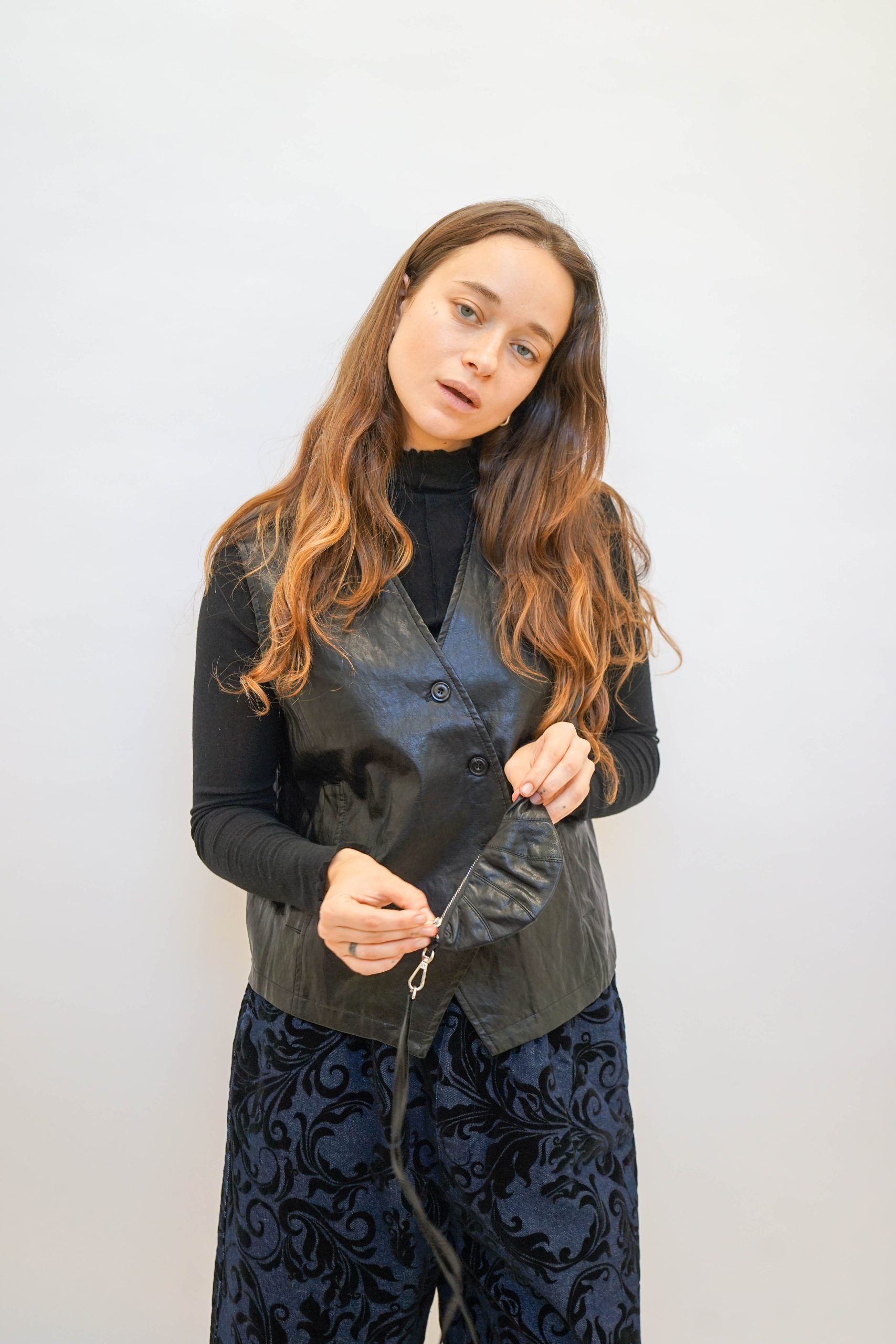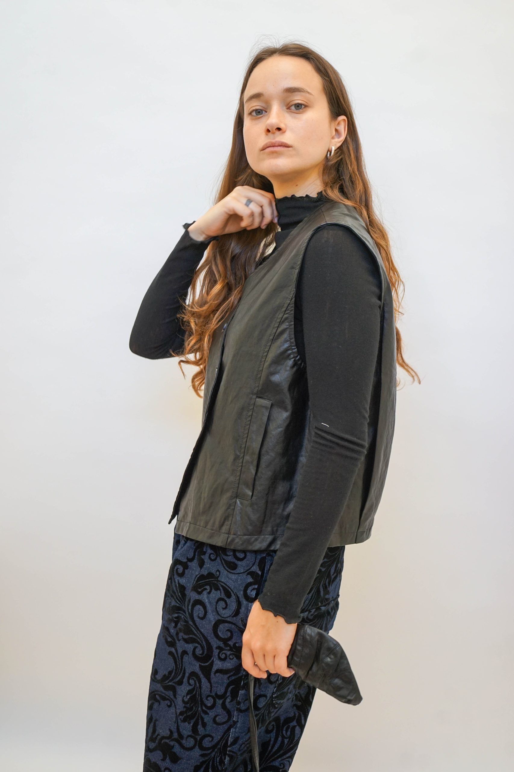 ווסט דמוי עור עם כפתורים אלכסוניים בגיזרה מחוייטת קרובה לגוף