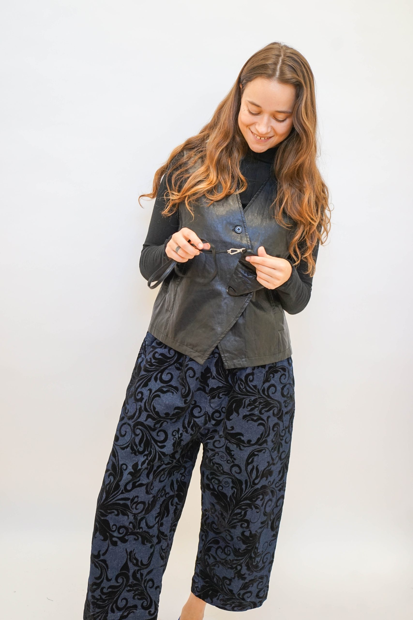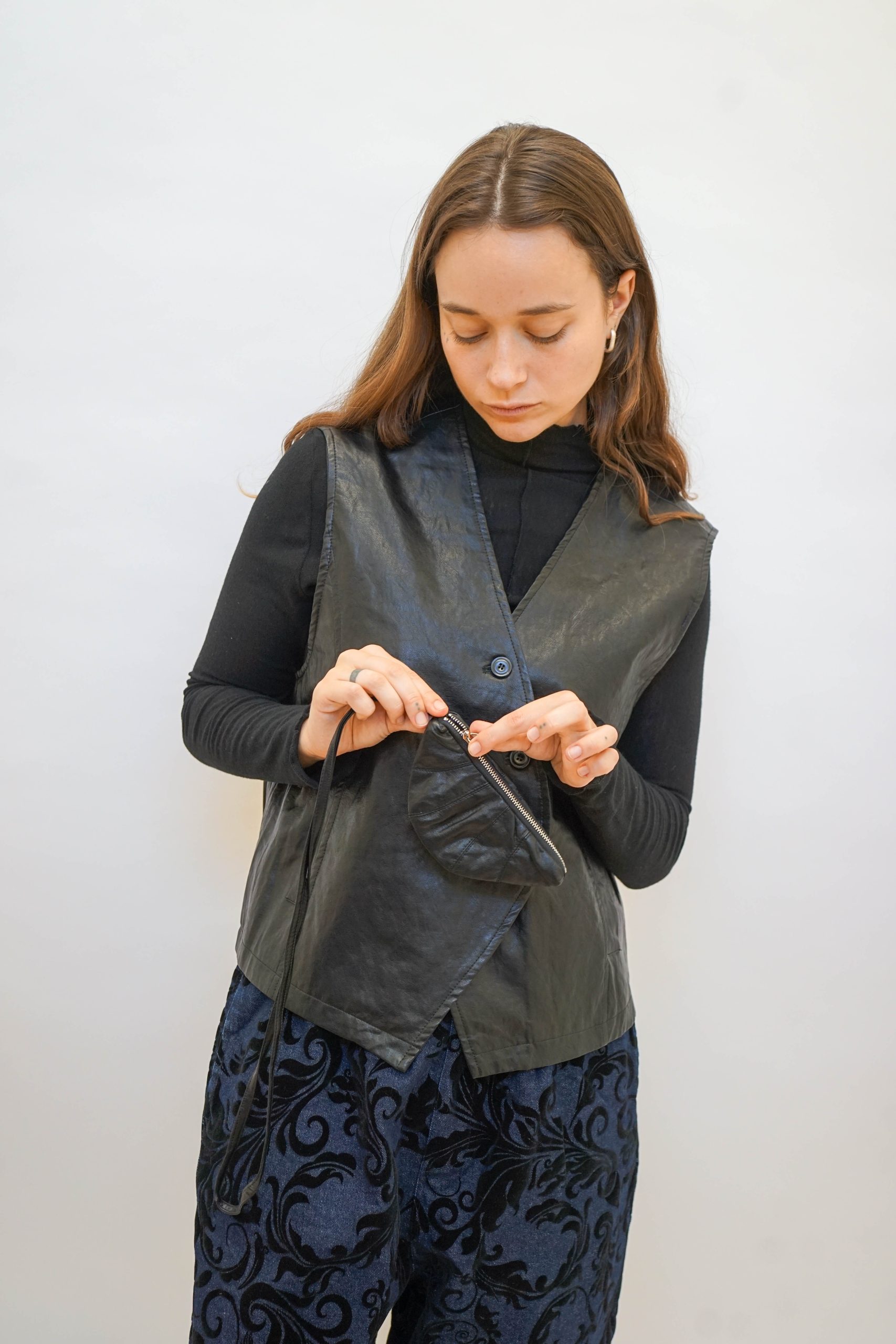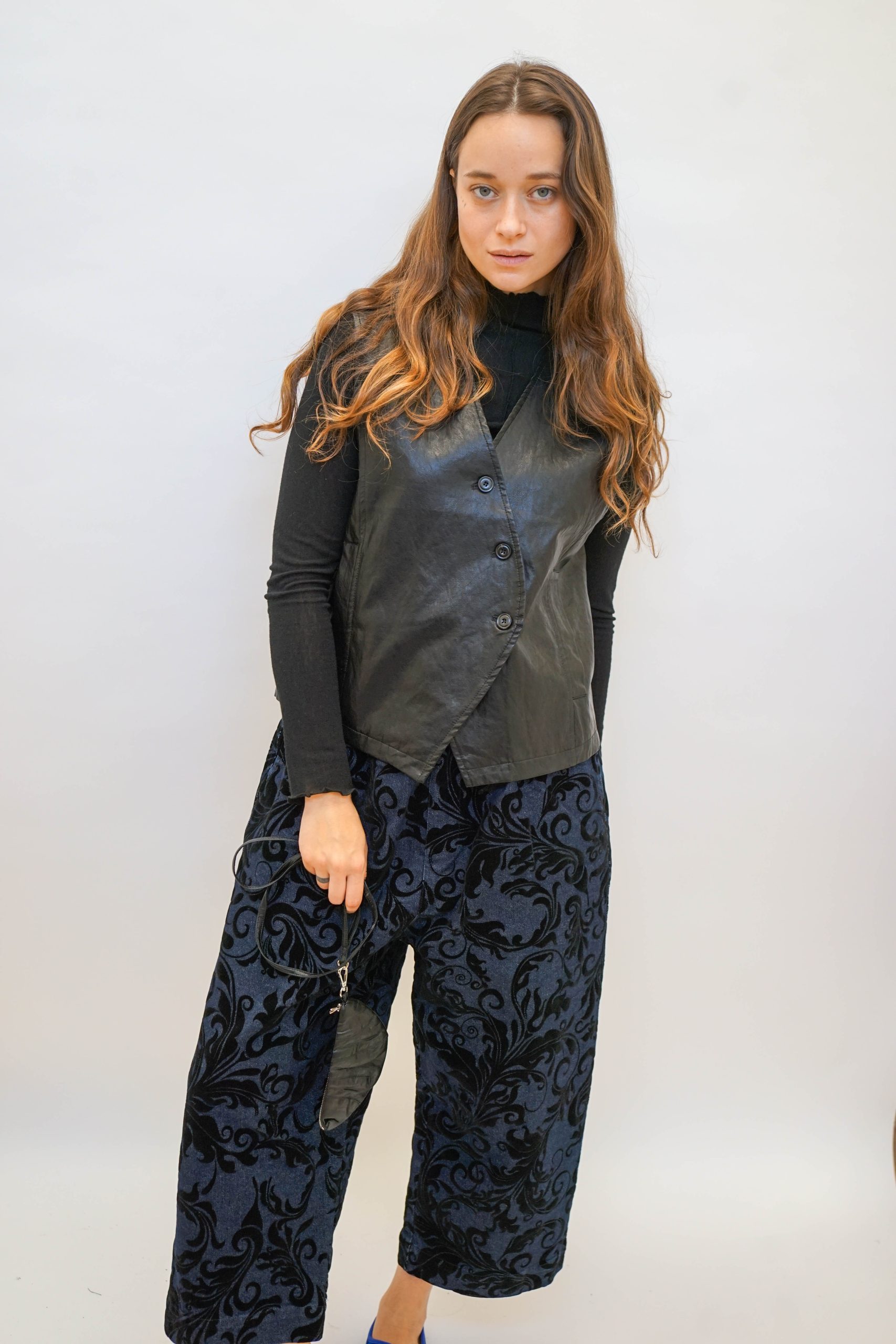 ווסט דמוי עור עם כפתורים אלכסוניים בגיזרה מחוייטת קרובה לגוף