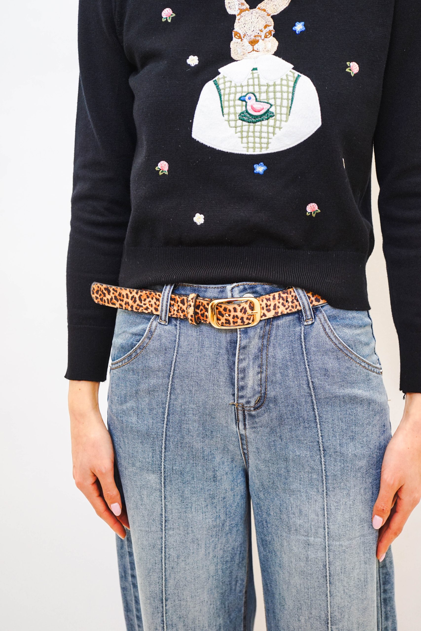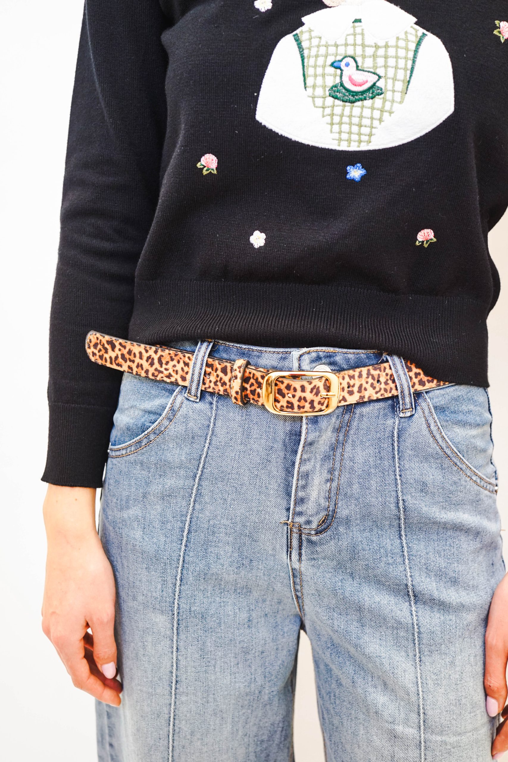 חגורה מנומרת עם אבזם זהוב מתאימה לכל לוק one size