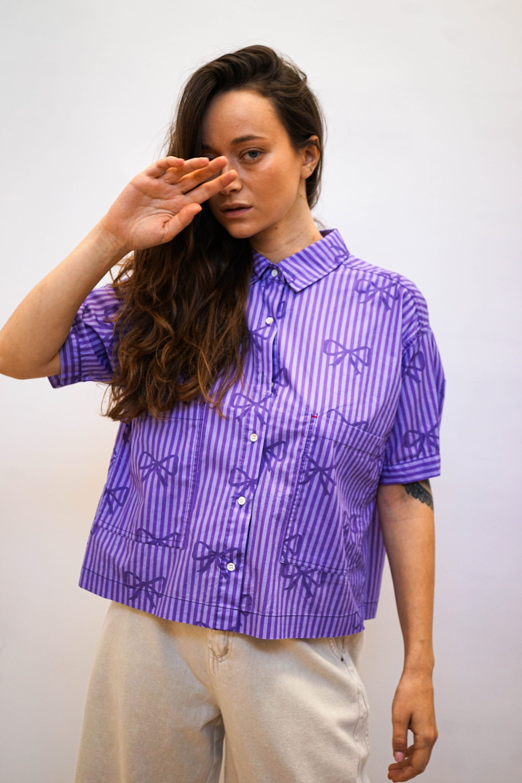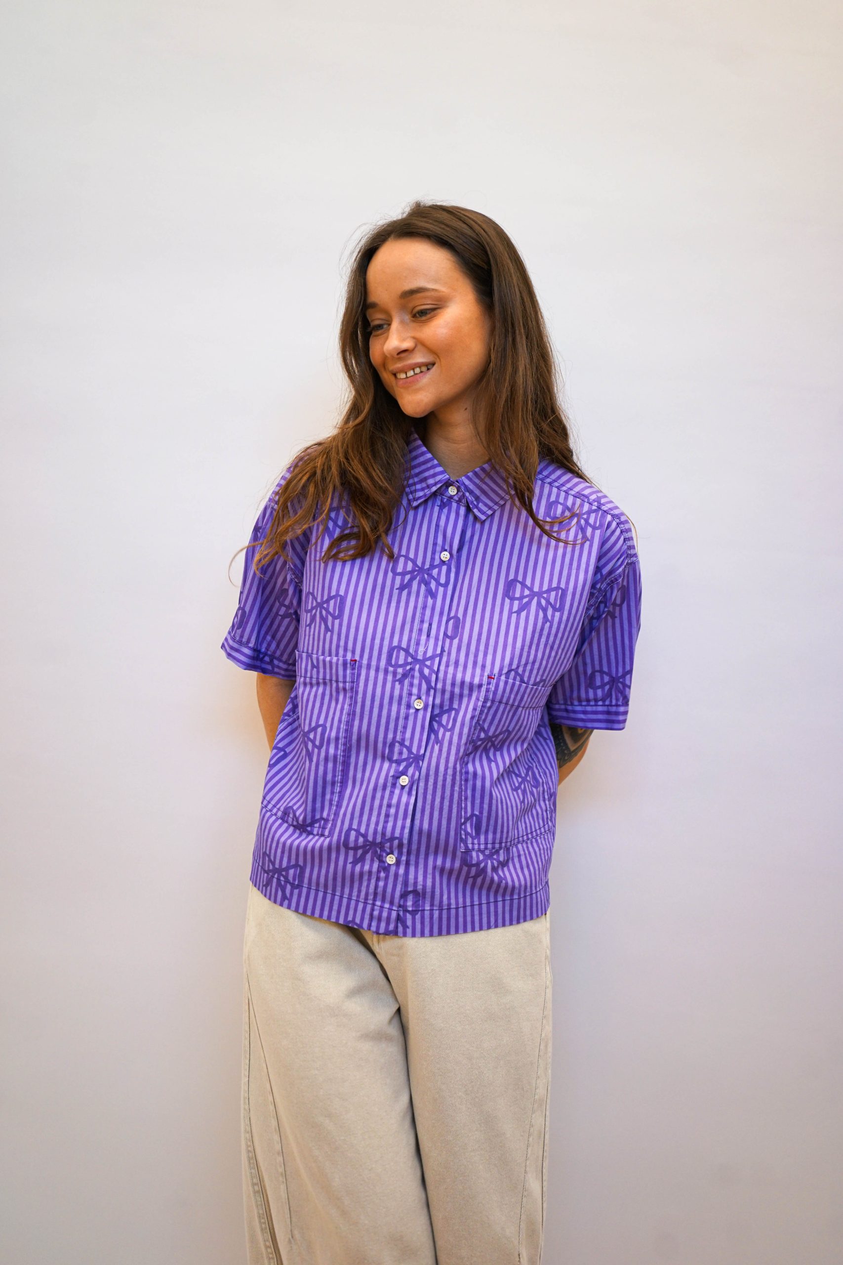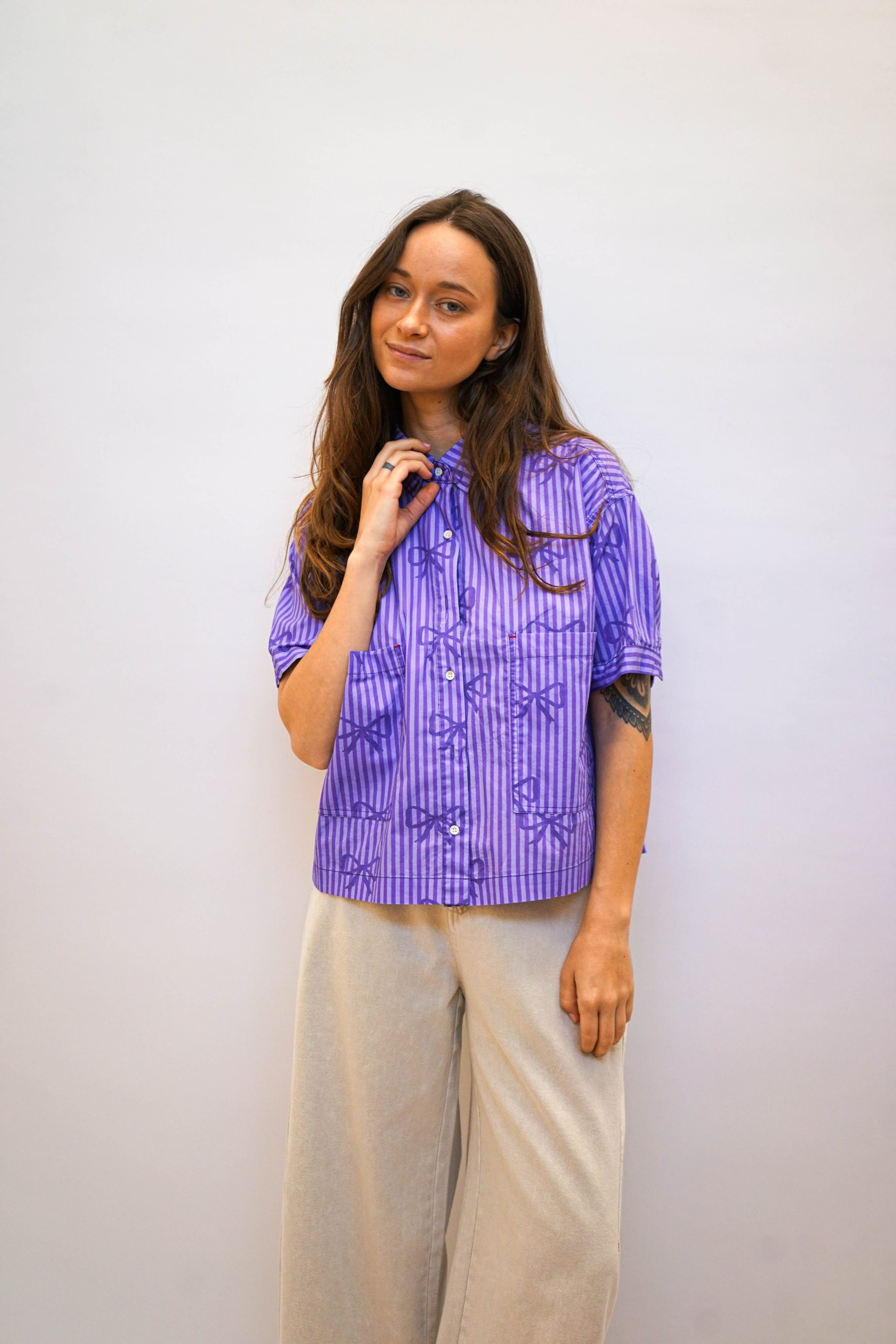 חולצה מכופתרת פפיונים סגולה