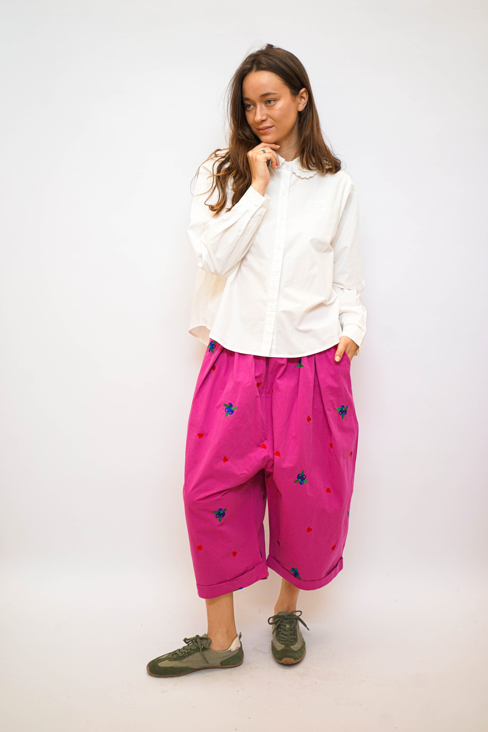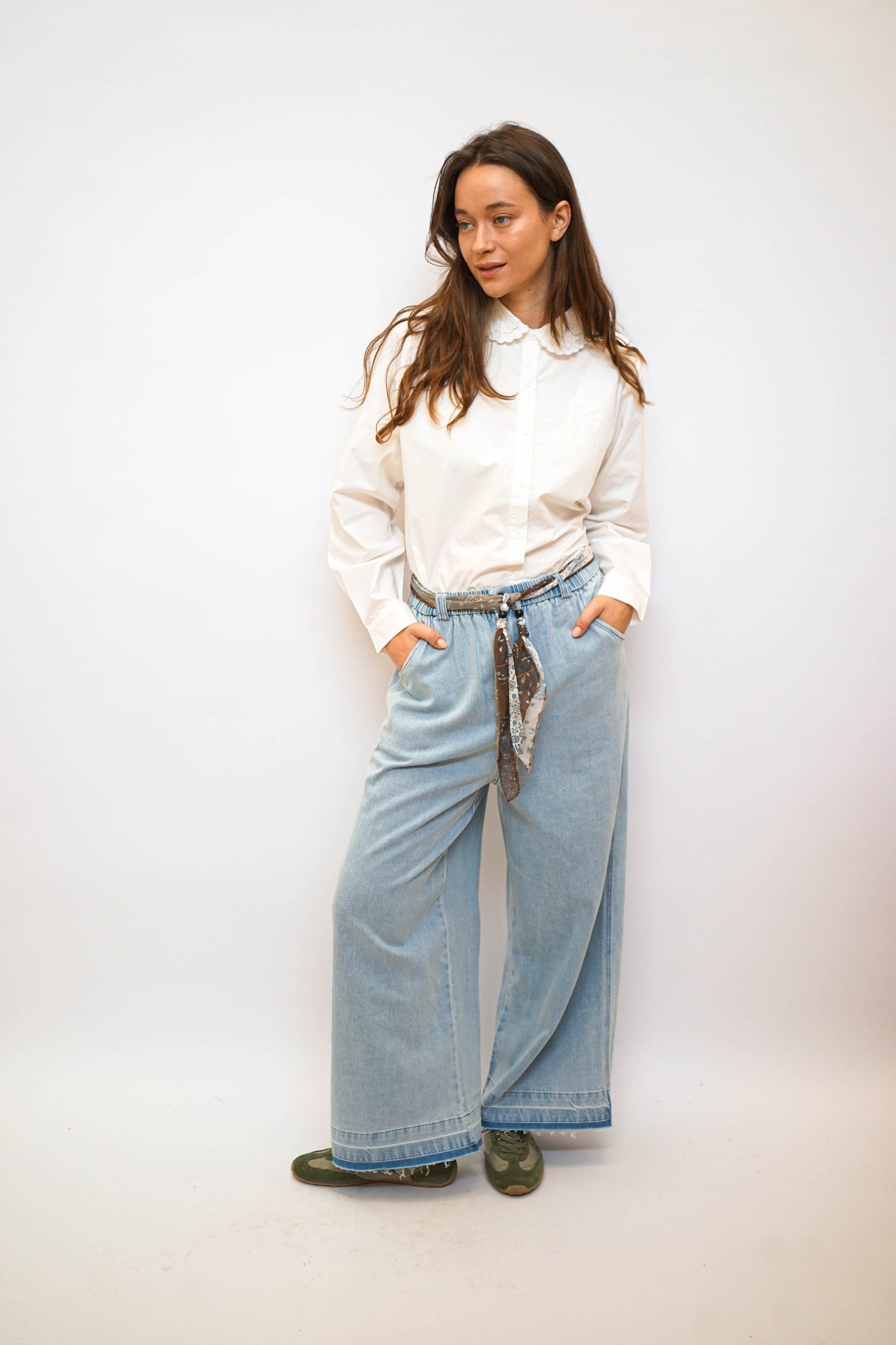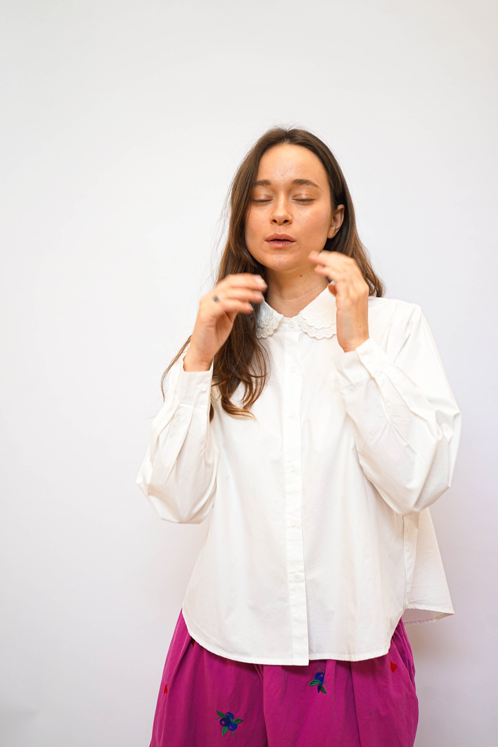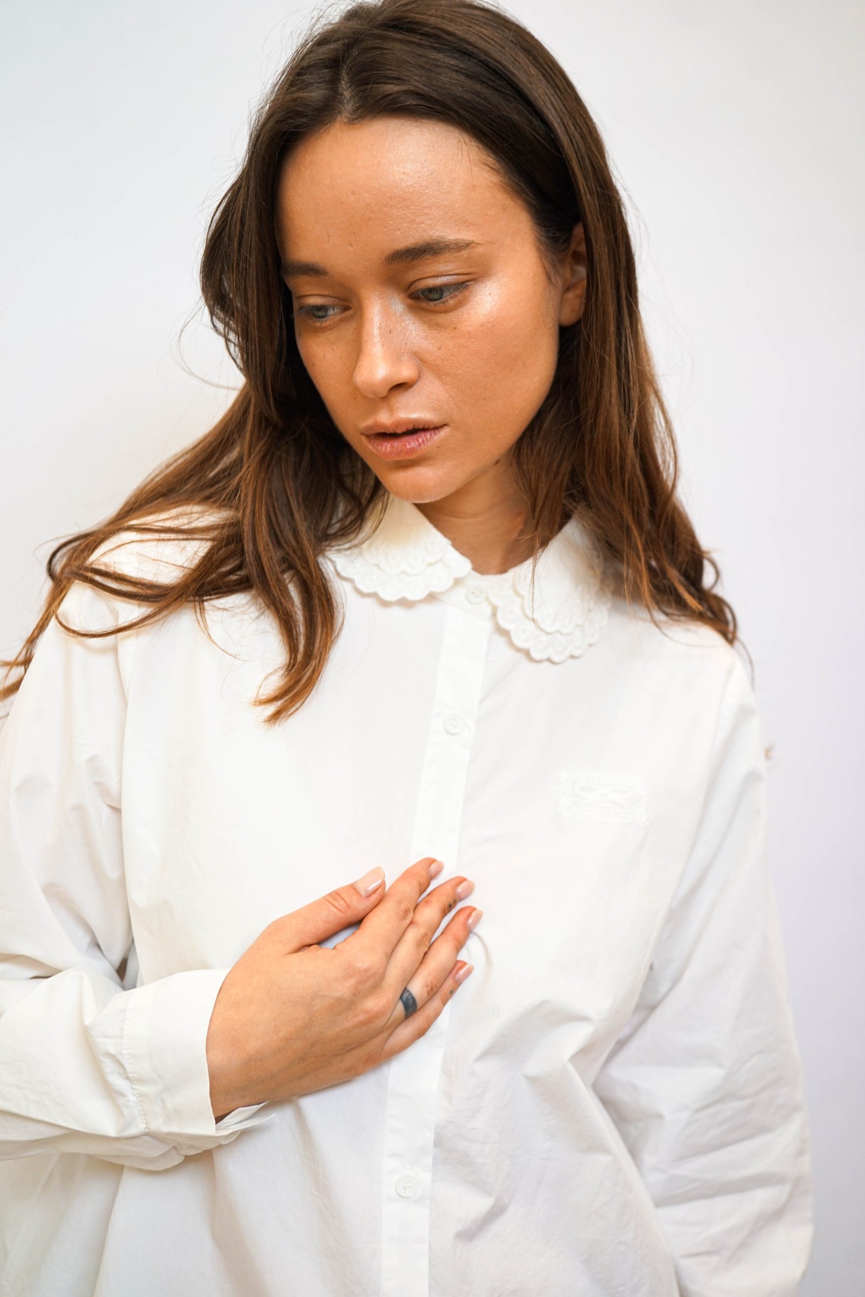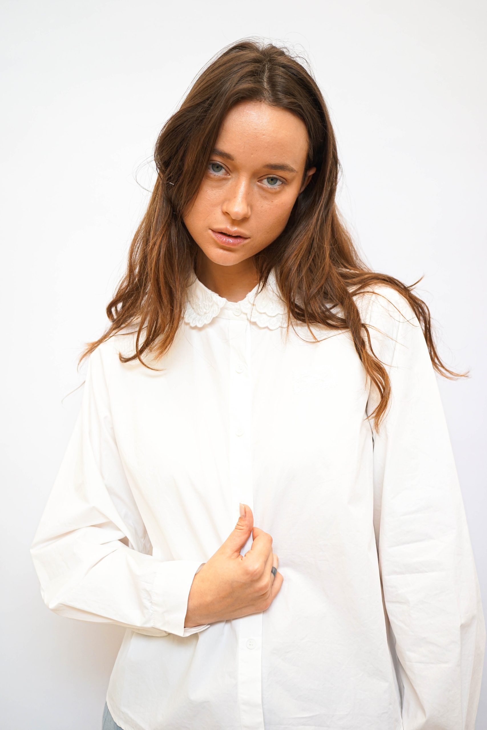 חולצה מכפותרת עם צווארון תחרה כפול פפיון תחרה מוטבע בצד 100% כותנה מושלמת לערב חג או אפילו סתם ככה למשרד בגזרה רחוקה מעט מהגוף עם כפתורים לכל אורכה אורך 57/65 היקף 110