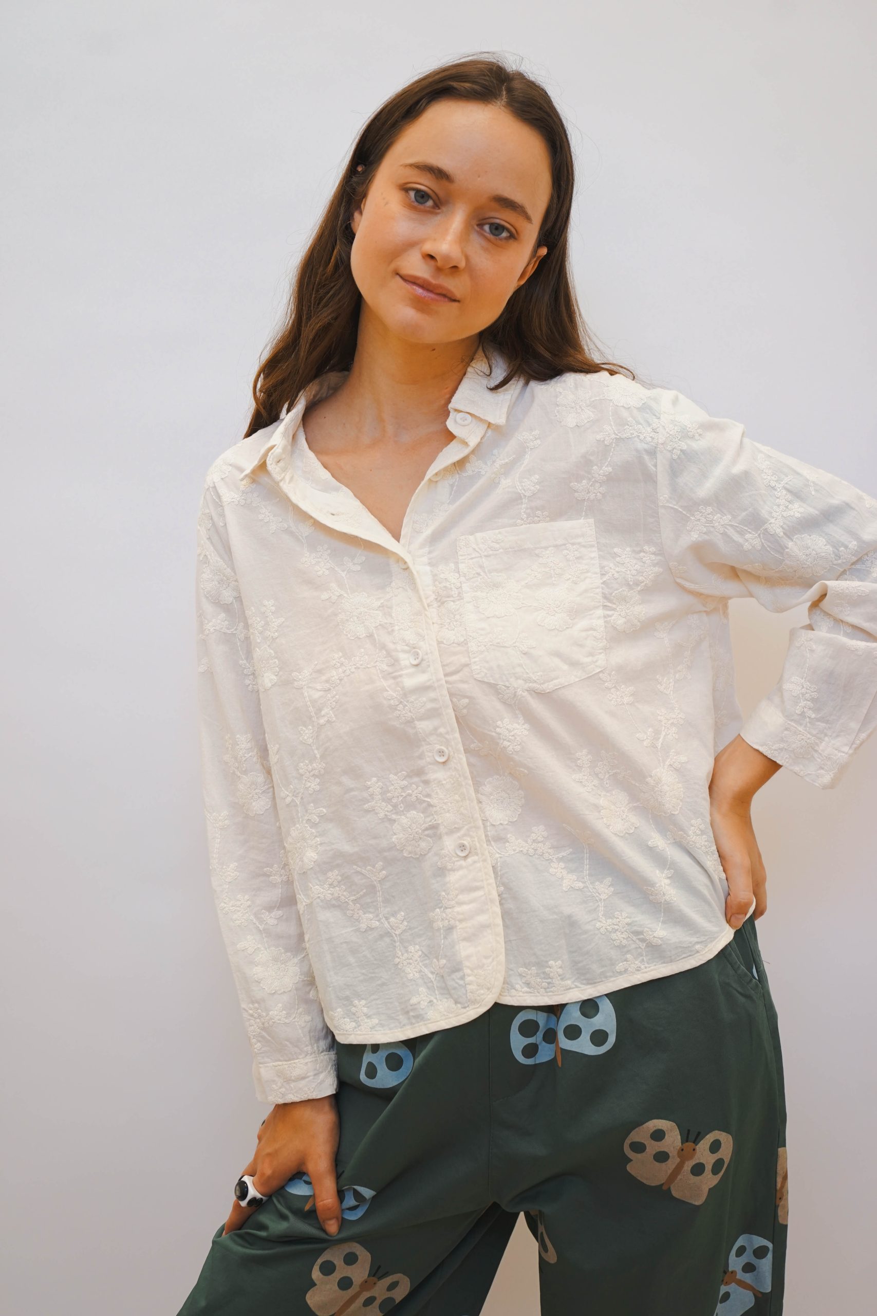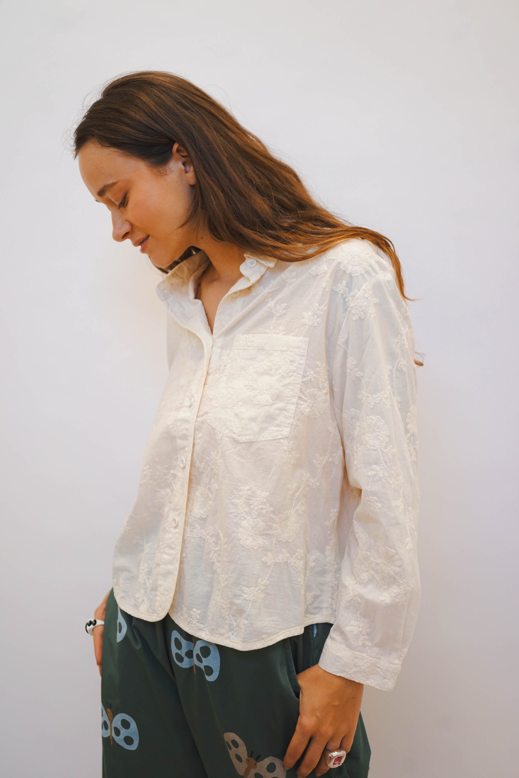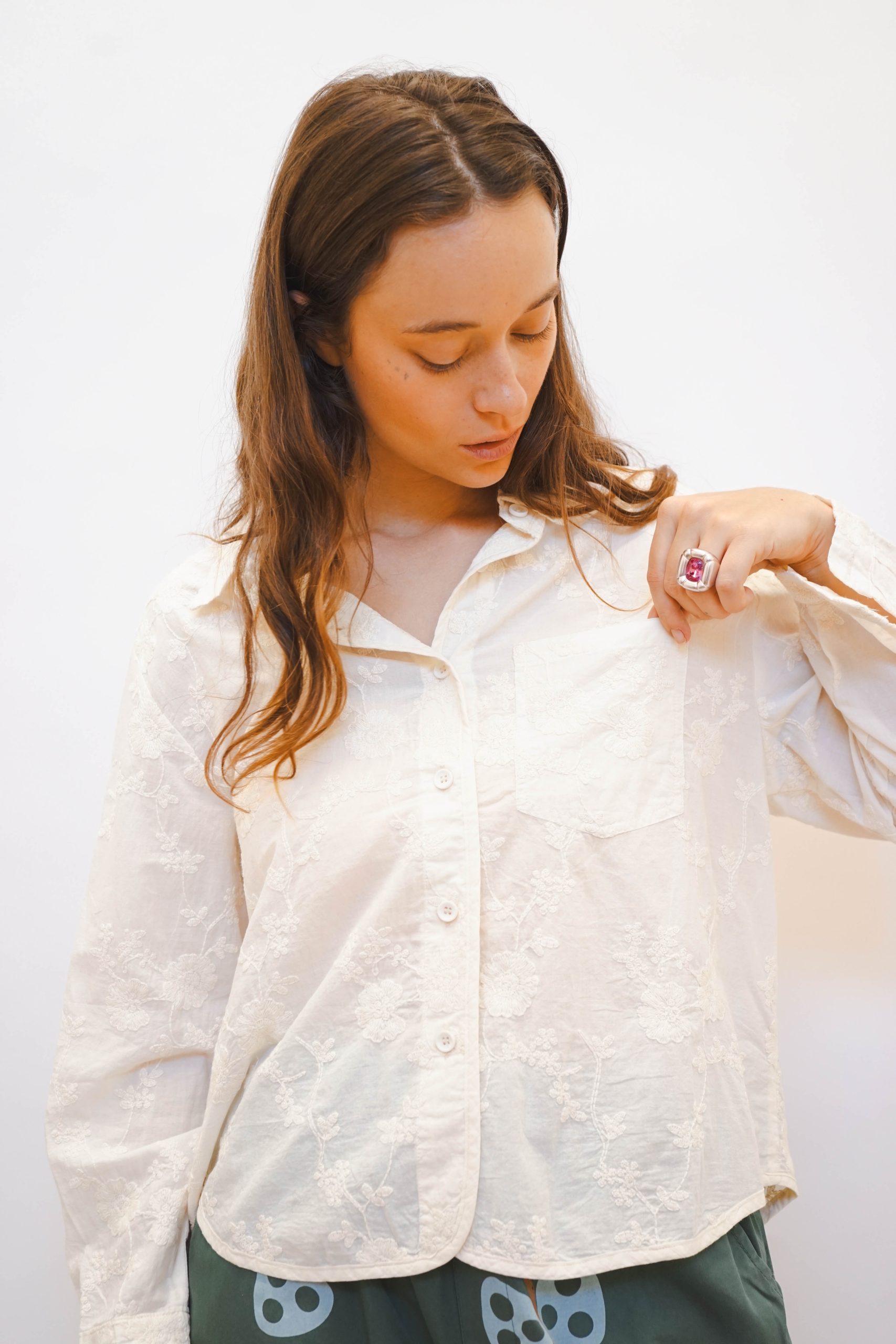 חולצת כפתורים 100% כותנה כפתורים וצווארון פרחים בבד בגיזרה מעולה יכולה להתאים למראה יום יומי עם ג'ינס. או מכנסים מחויטים למשרד. חצאית או מתחת לכל ווסט או אפודה יתנו טוויסט מעניין אורך 58 קידמי 63 אחורי היקף110