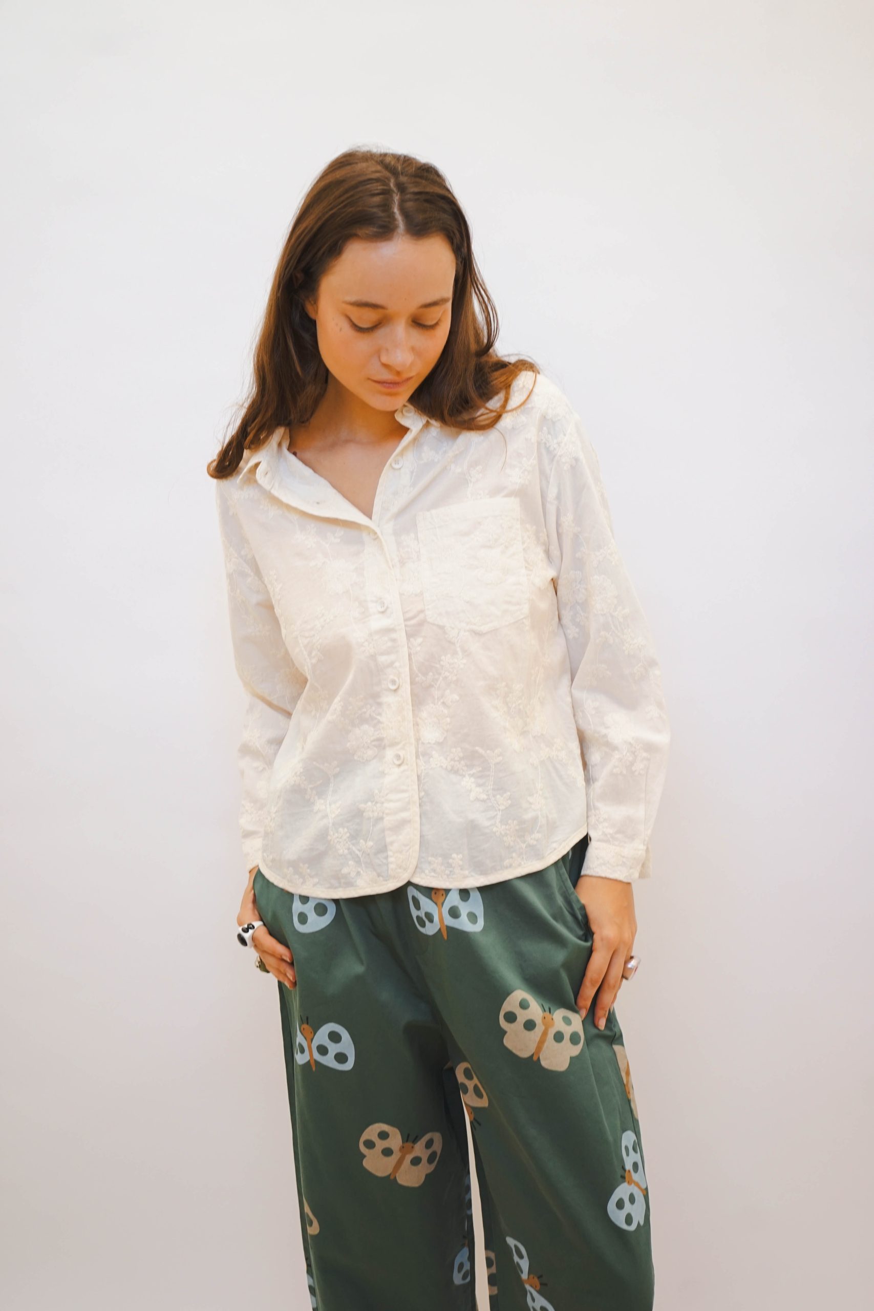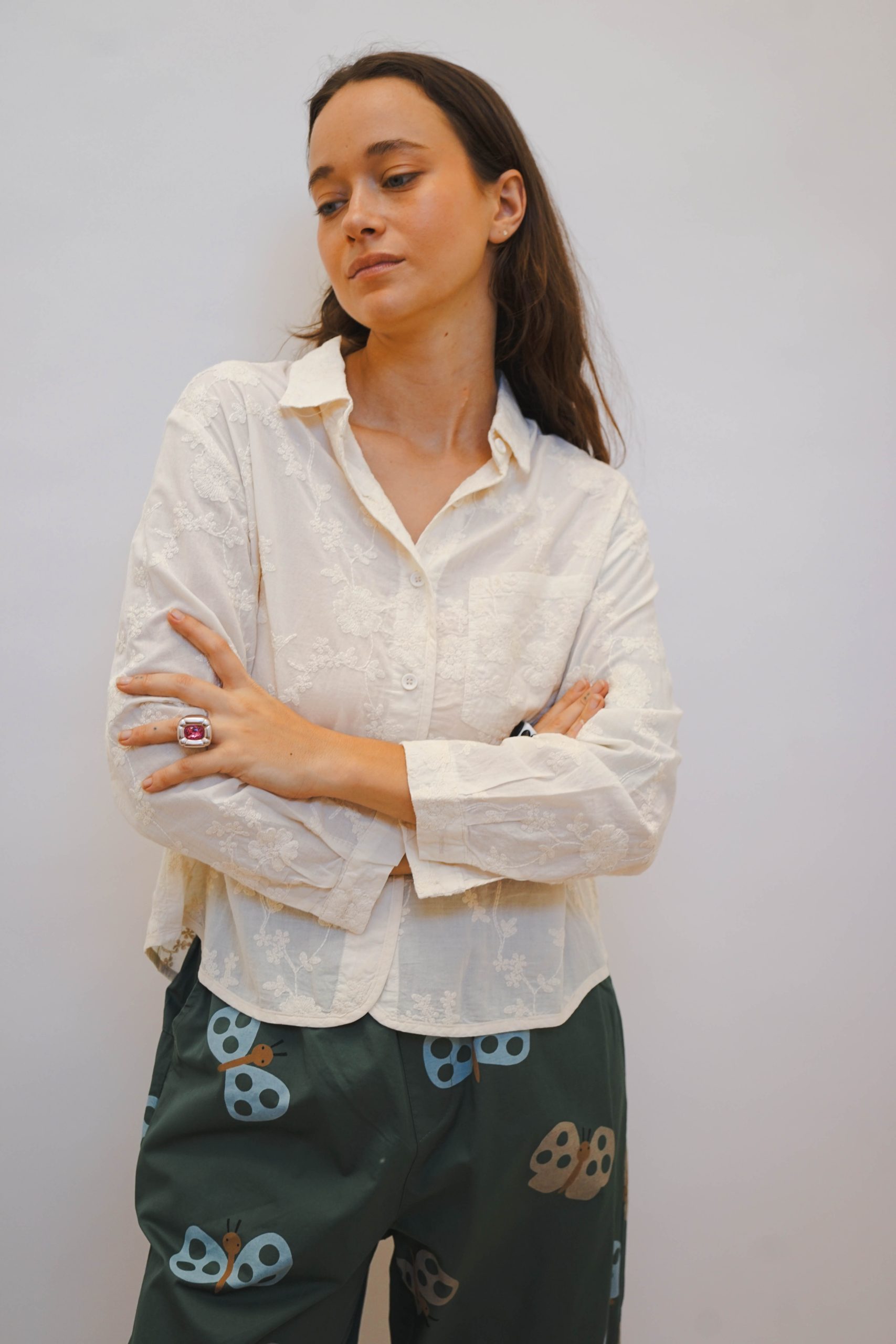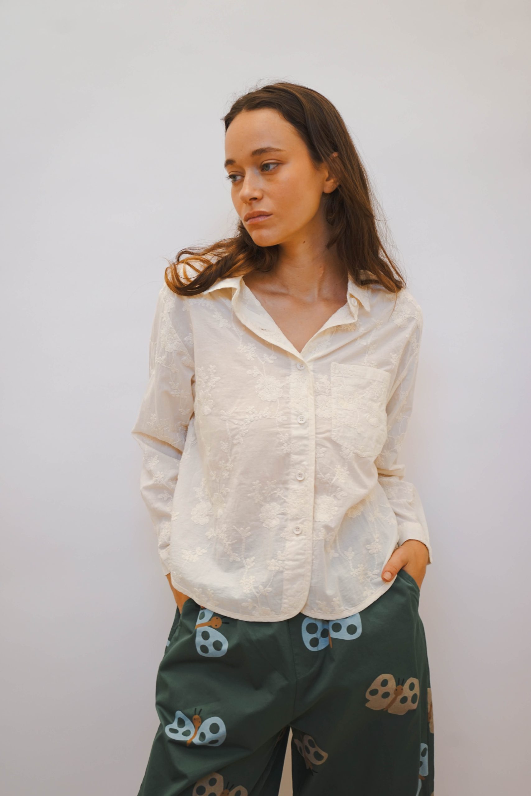 חולצת כפתורים 100% כותנה כפתורים וצווארון פרחים בבד בגיזרה מעולה יכולה להתאים למראה יום יומי עם ג'ינס. או מכנסים מחויטים למשרד. חצאית או מתחת לכל ווסט או אפודה יתנו טוויסט מעניין אורך 58 קידמי 63 אחורי היקף110