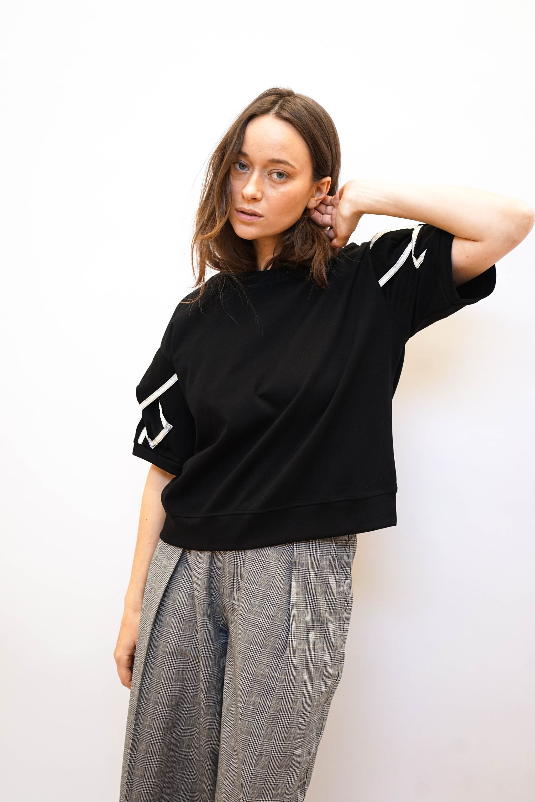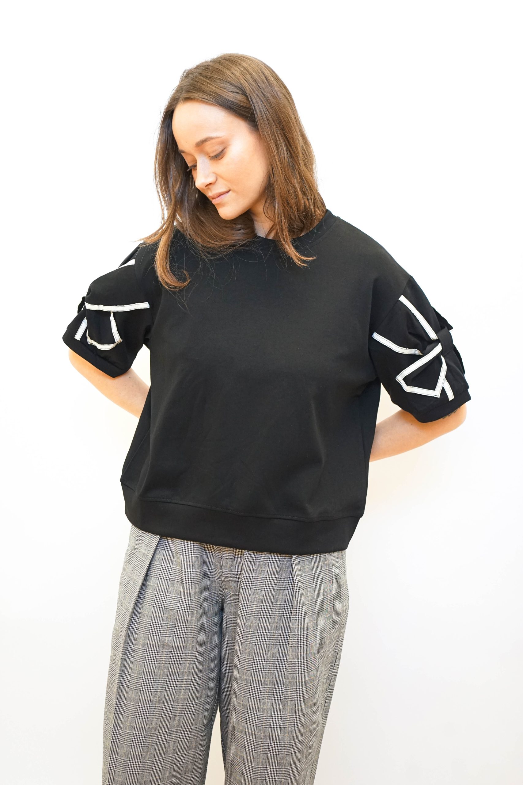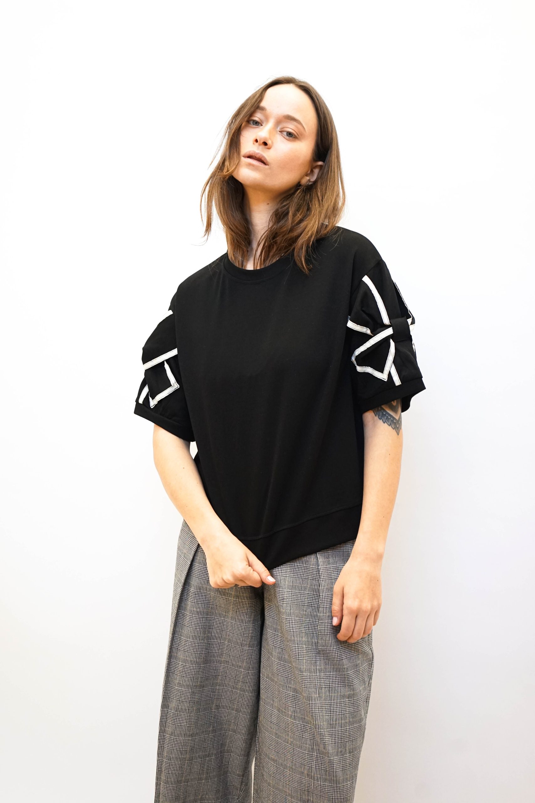 טי פפיון בשרוולים שחור