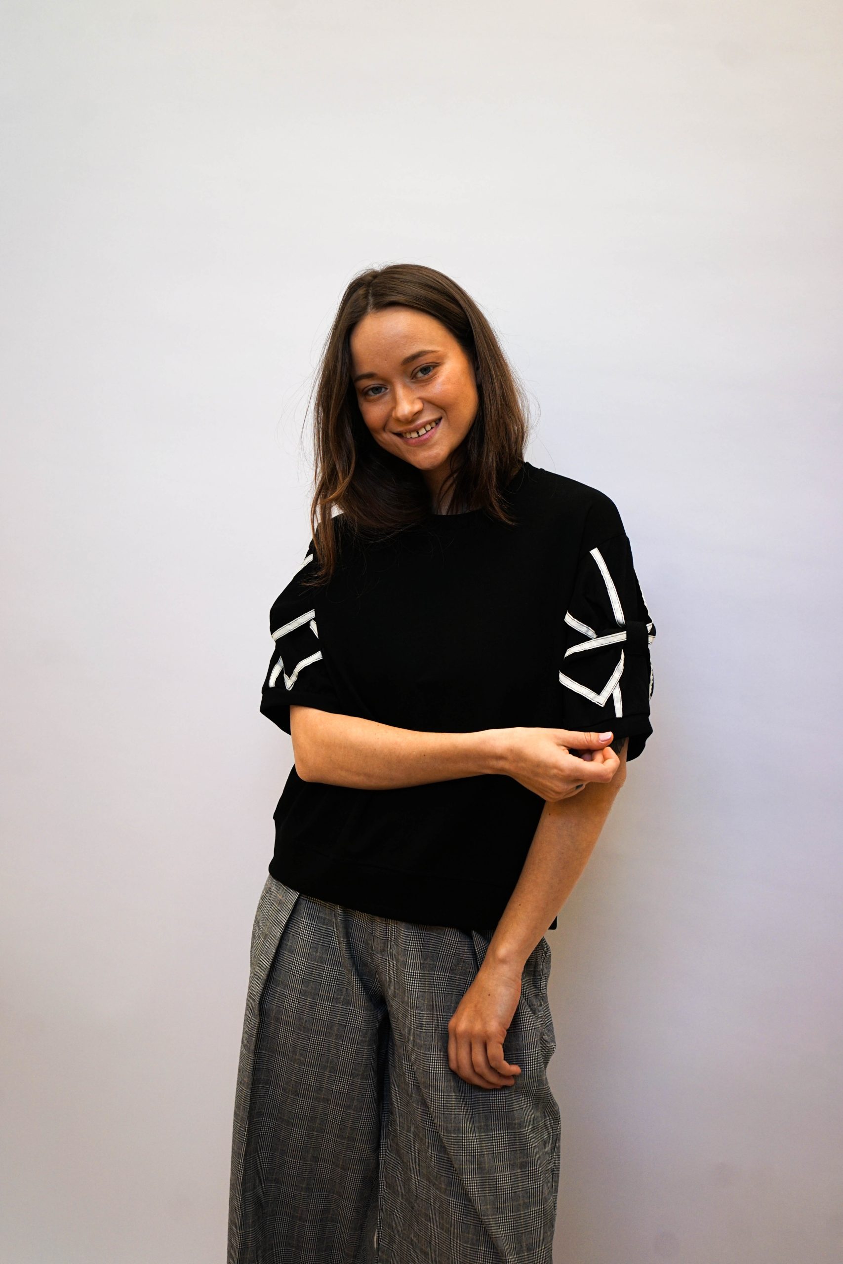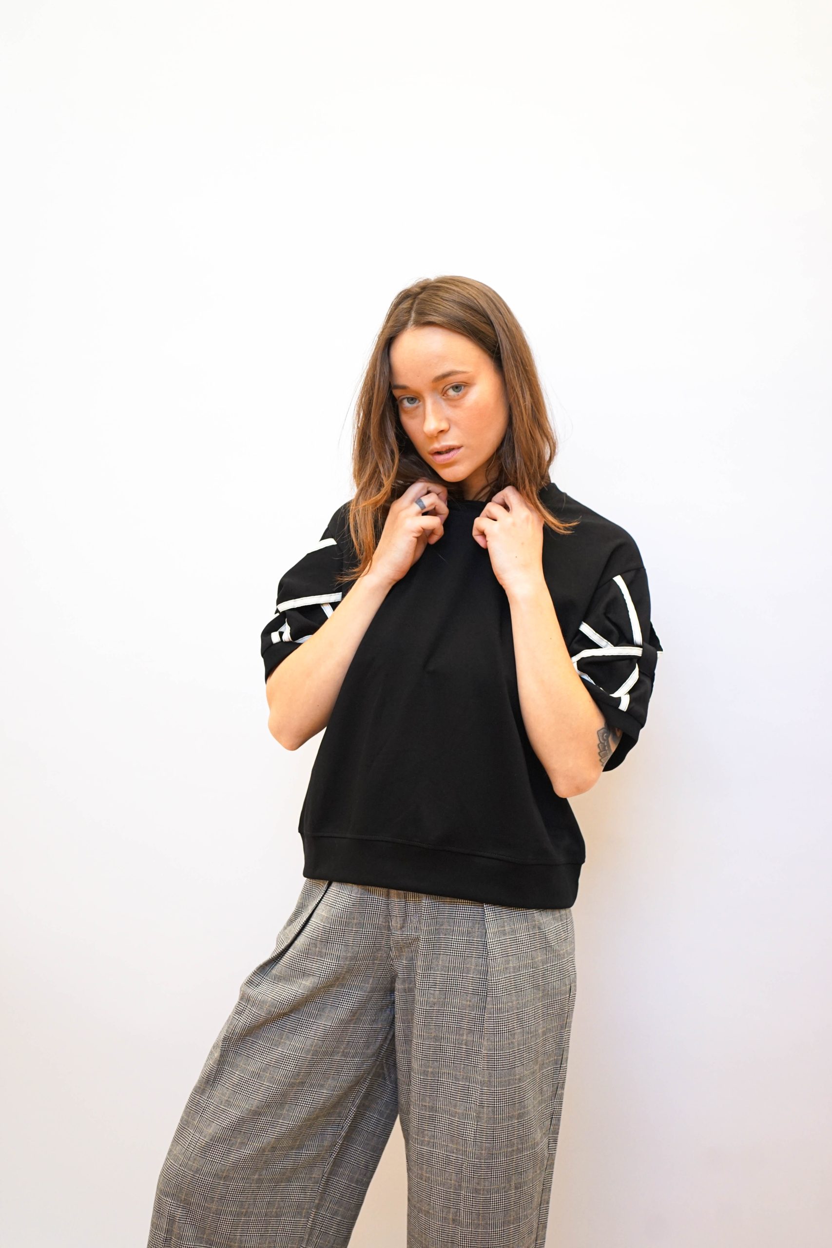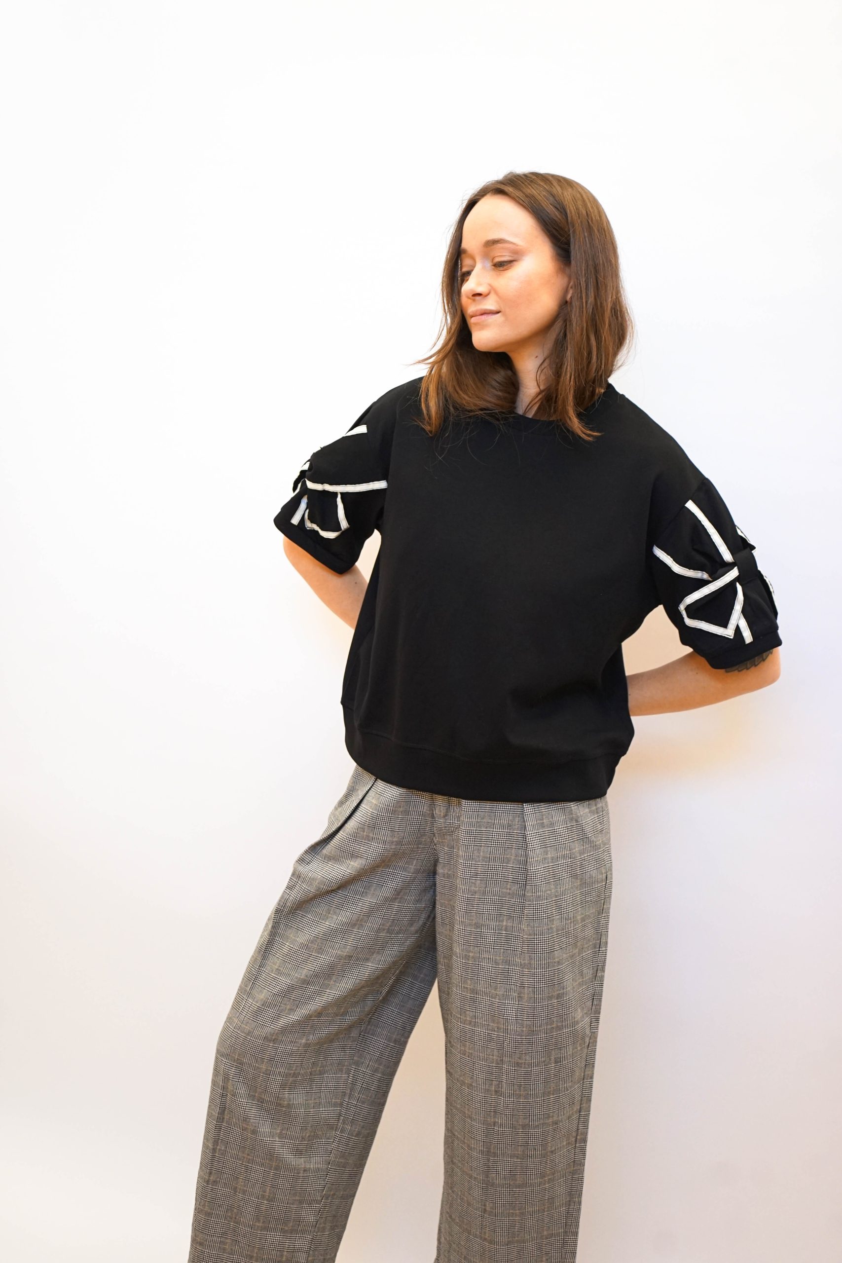 טי פפיון בשרוולים שחור
