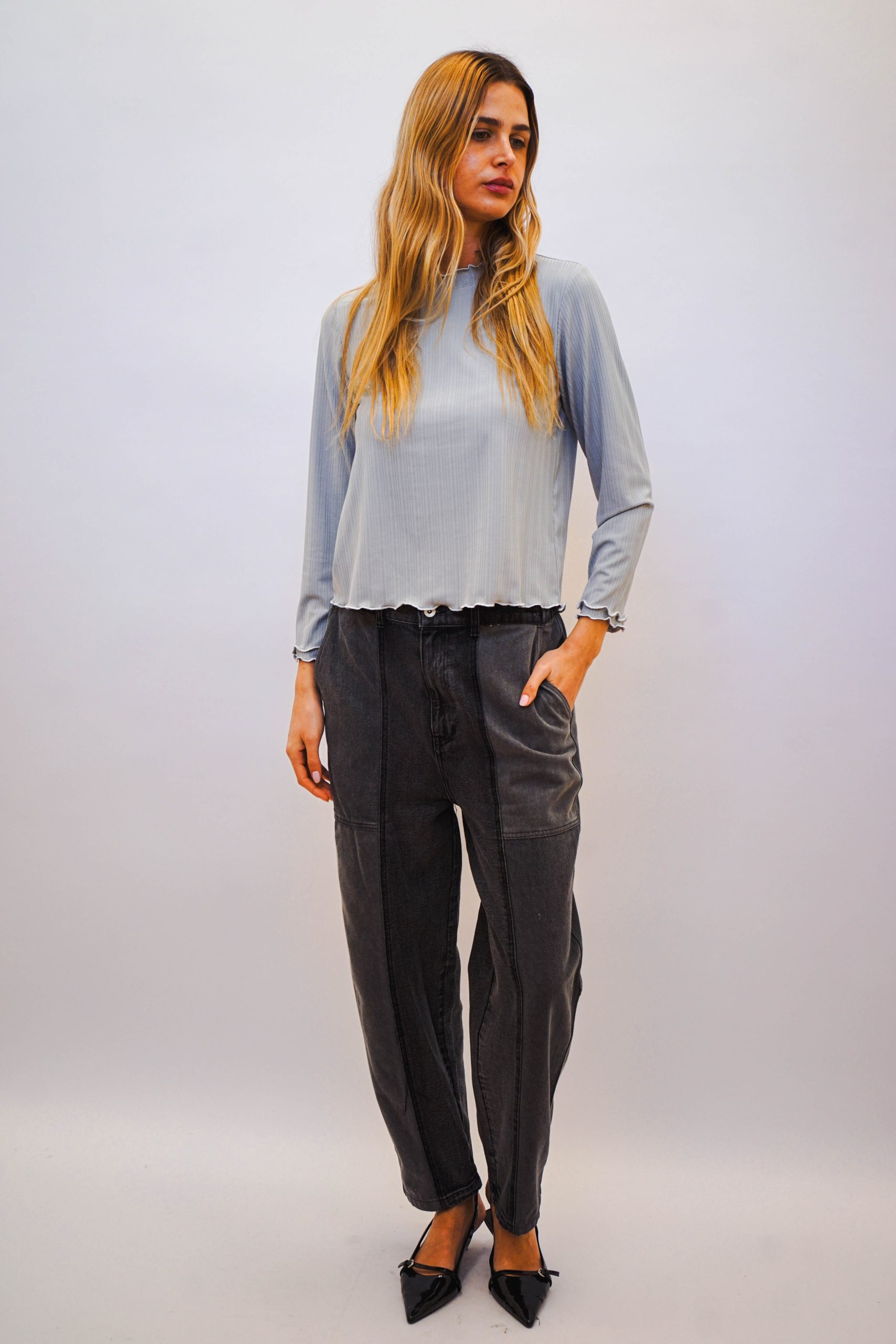מכנסי גינס בגיזרה ישרה עם שרוך קשירה פנימי למראה סטייל וייחודי בצבעים אפורים יפה עם כל סווטשירט או חולצה צבעונית או חלקה עשוי ג'ינס כותנה נעים וייחודי אורך 90 היקף 1 מטר