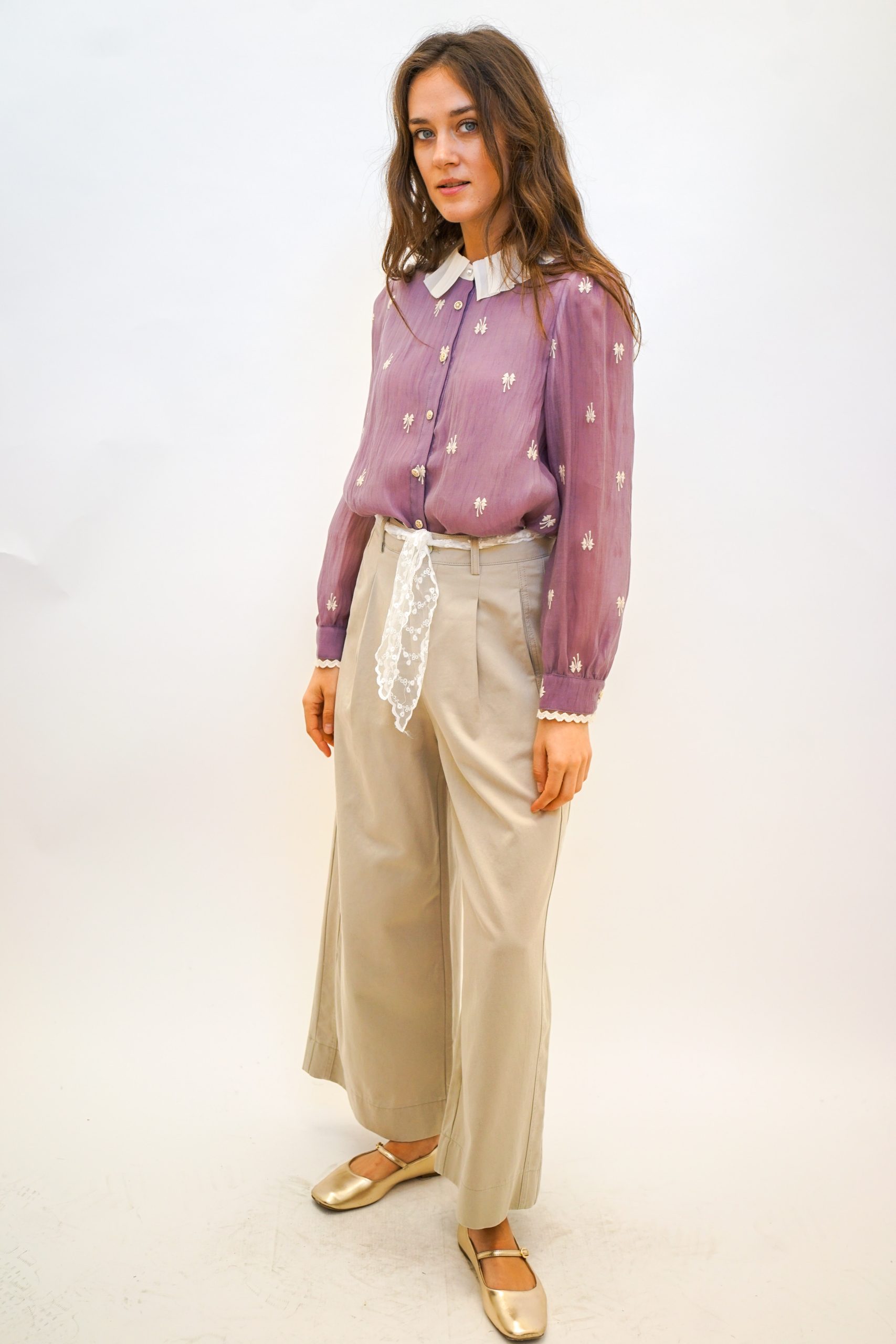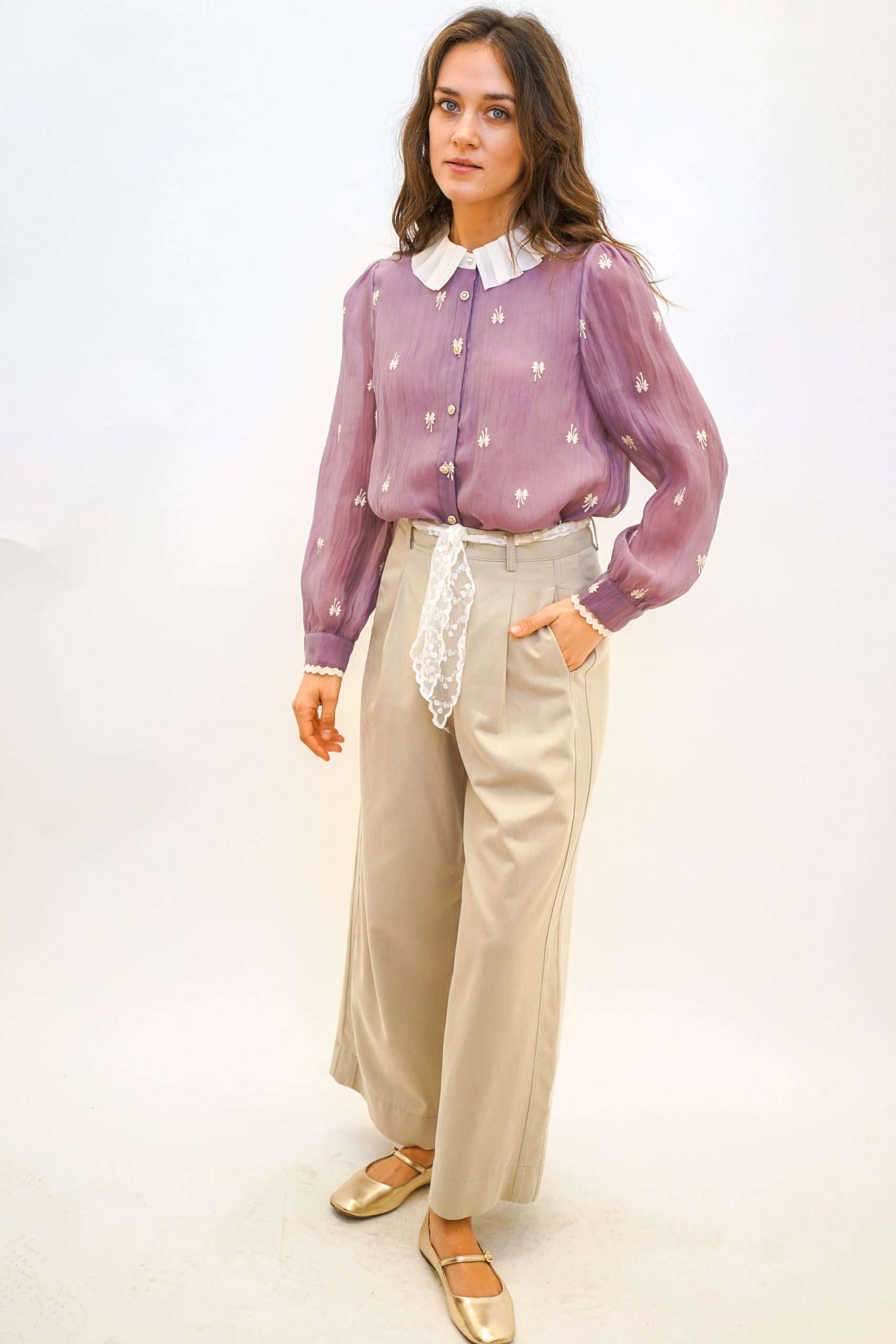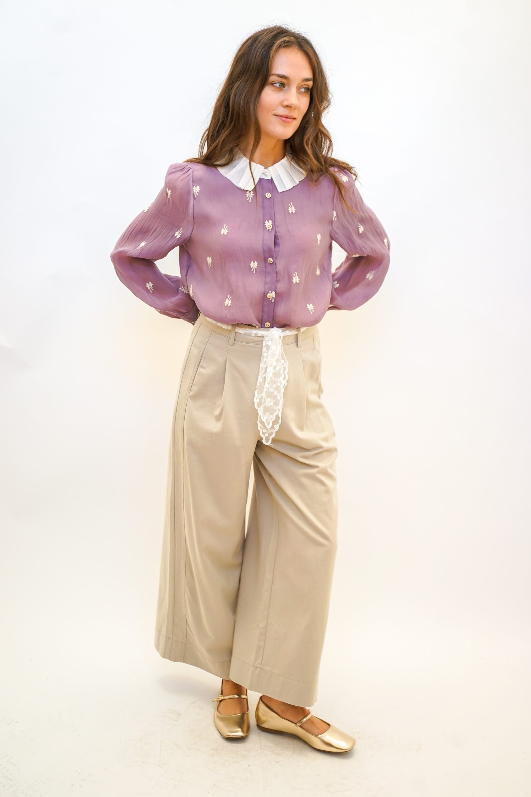 מכנסי חגורת תחרה בצבע חלב