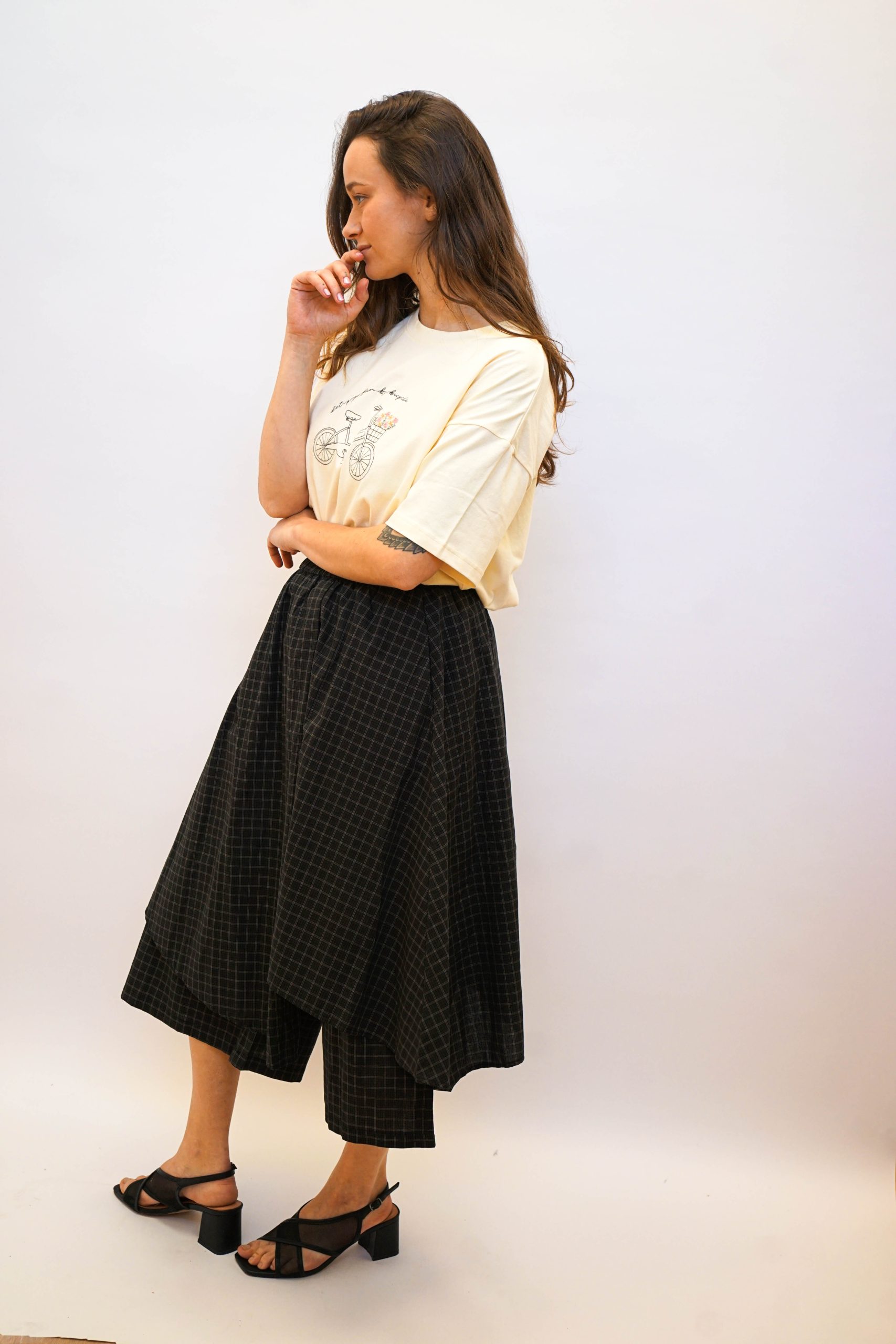 מכנסי חצאית אסימטרי שיבוץ