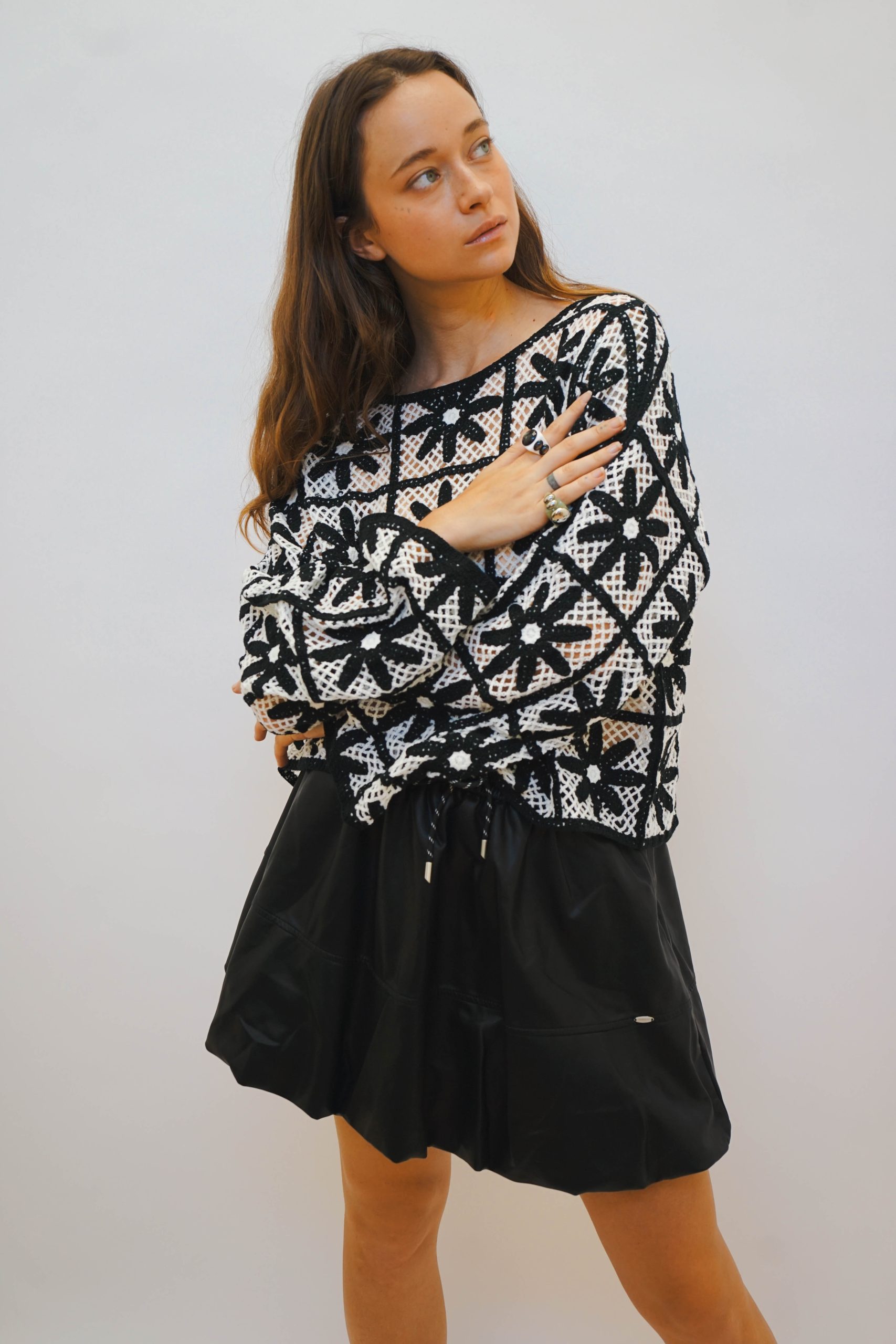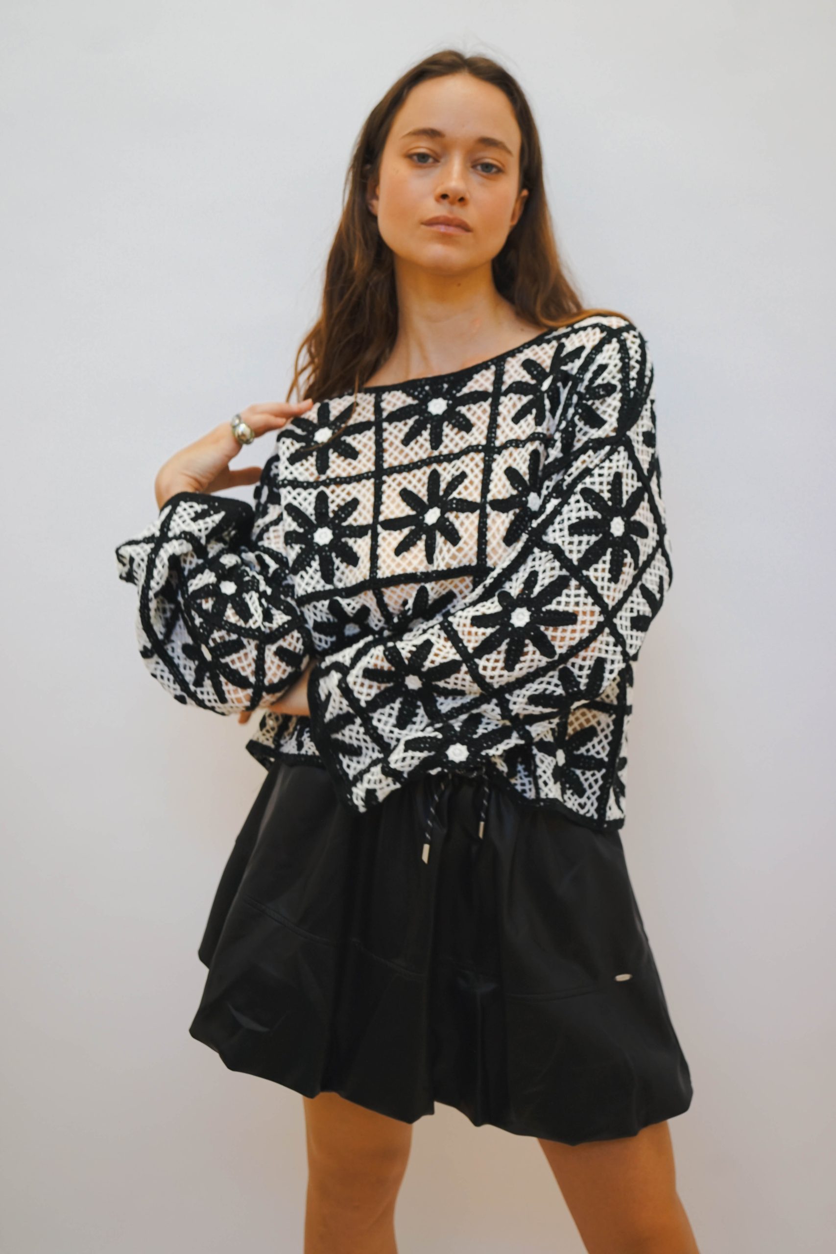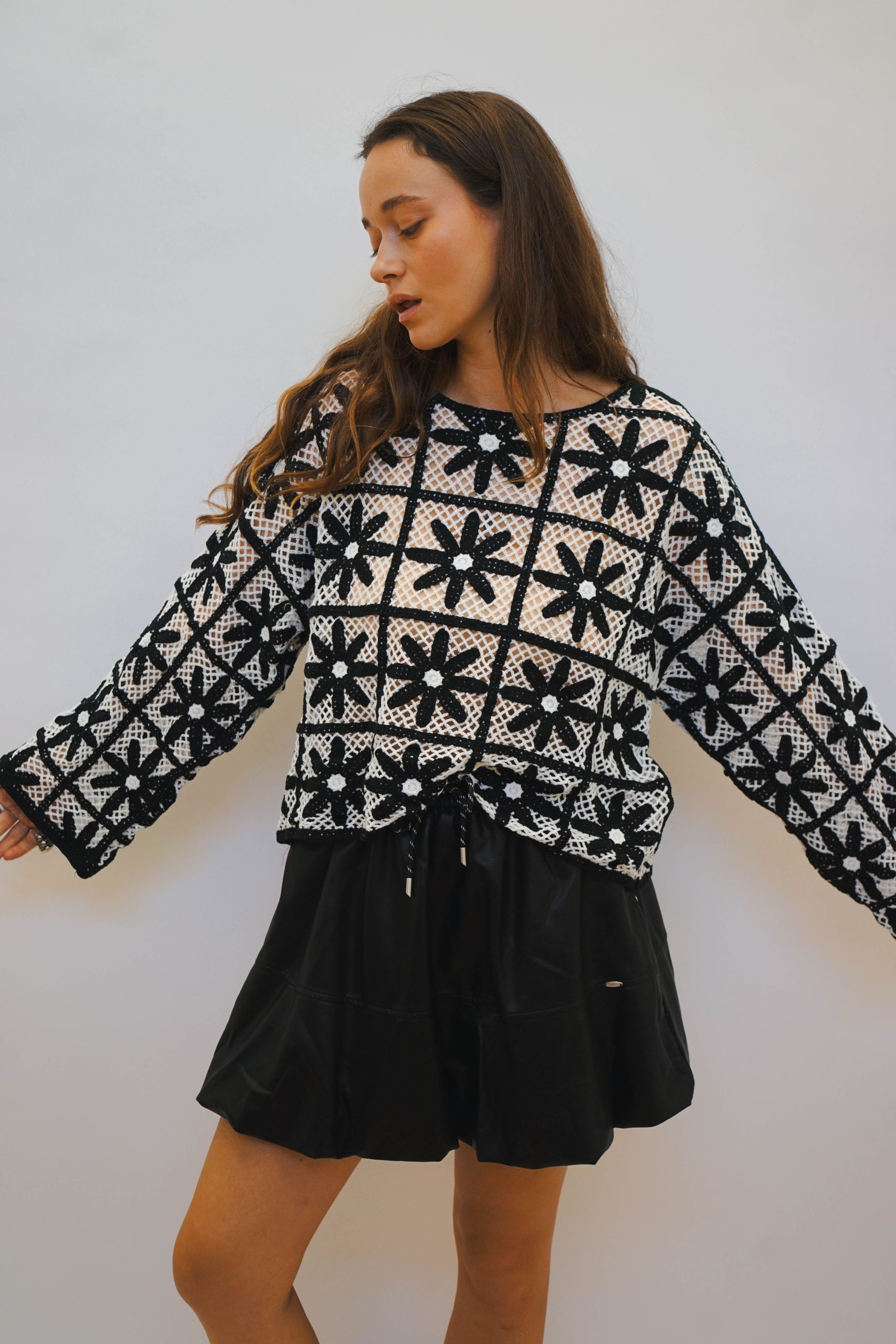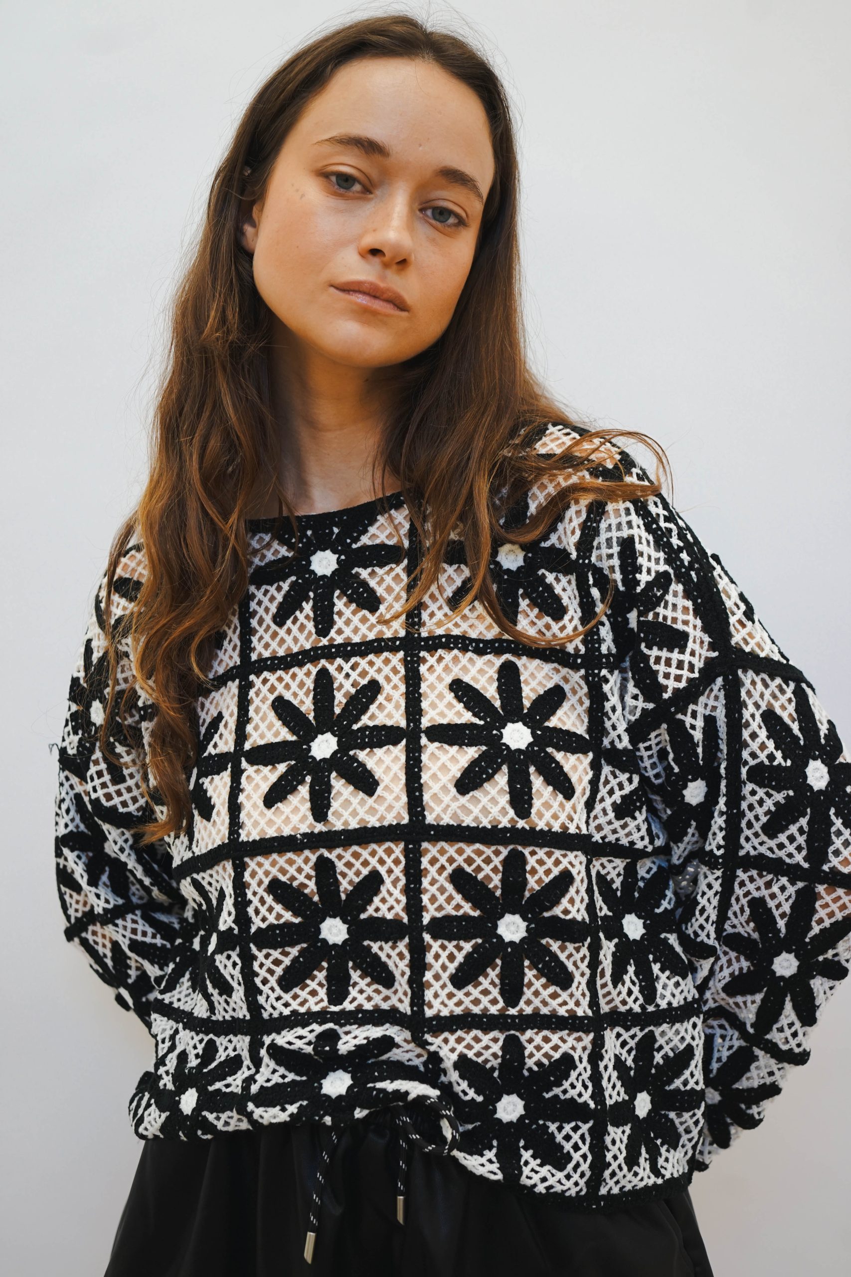 חולצת סריג רשת פרחים בצבעים מהממים במראה ילדת הפרחים . יכולה להתאים לערב או למשרד עם ג'ינס או מכנסי שמנת.לבנים אורך 56 היקף 120