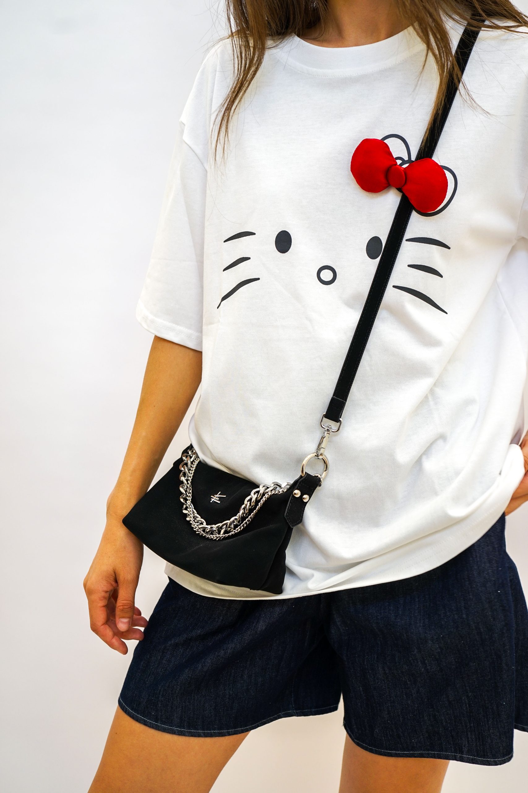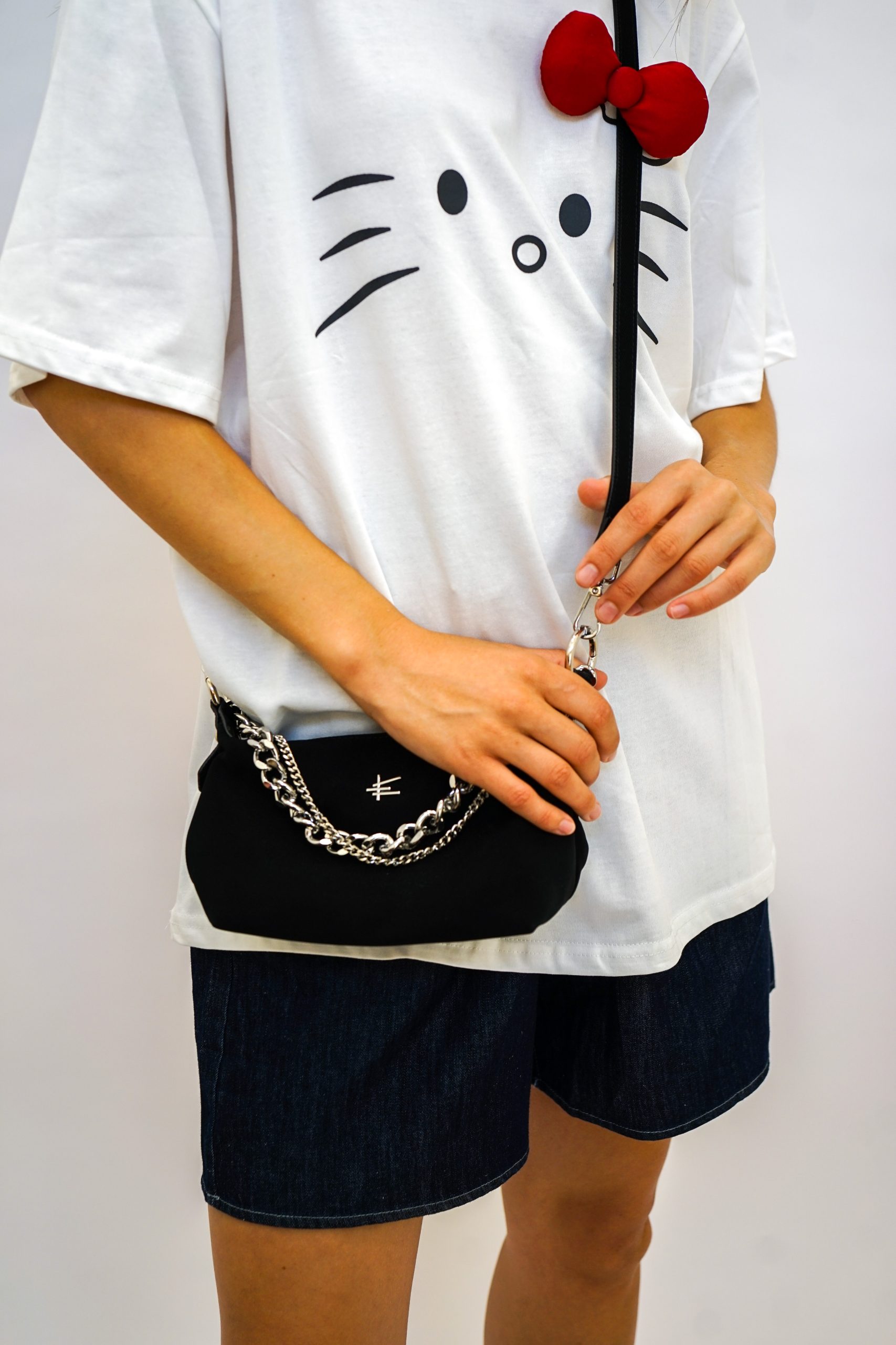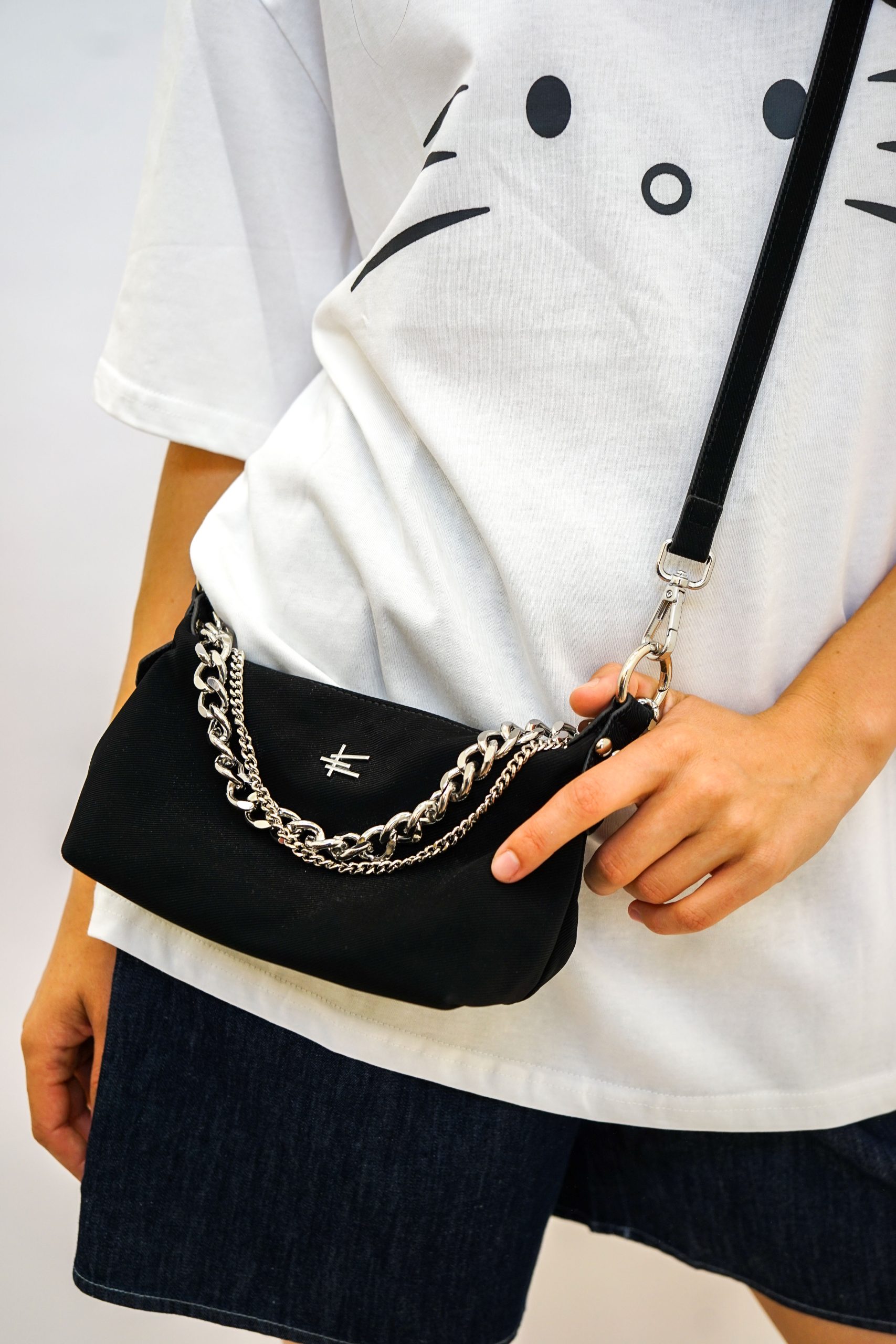 תיק זמש עם שרשראות גורמט כסופות בנשיאה בידית או קרוסבאדי למראה פאנקי מושלם גודל התיק 14/22 נסגר עם רוכסן ותא פנימי נוסף נסגר עם רוכסן